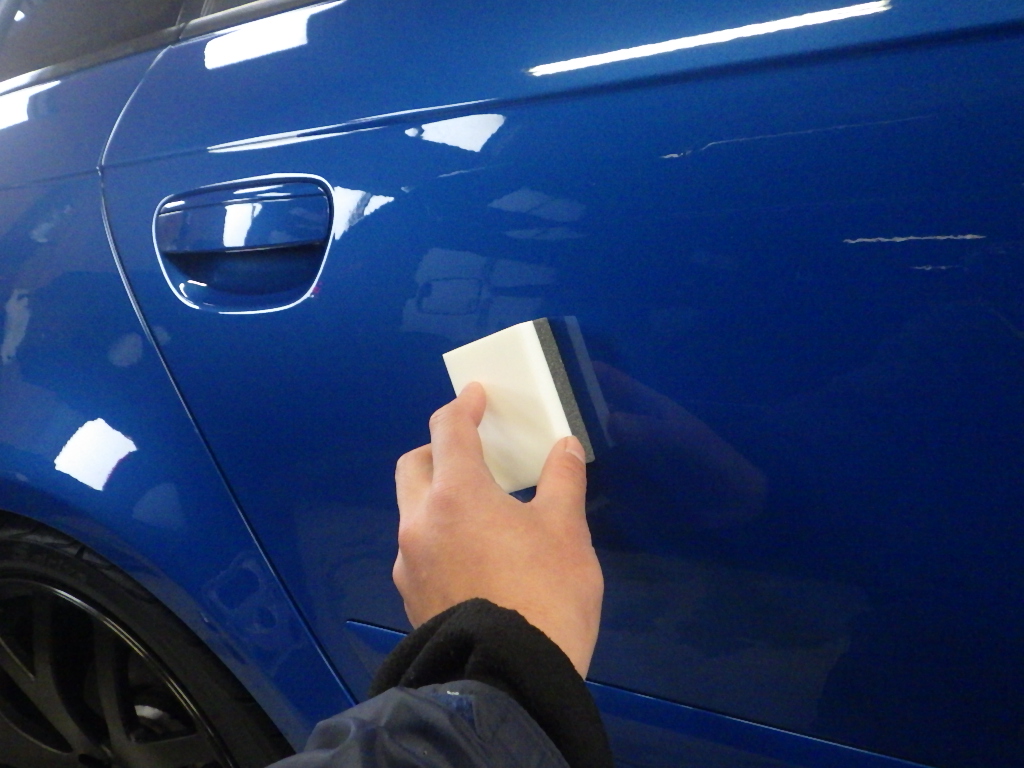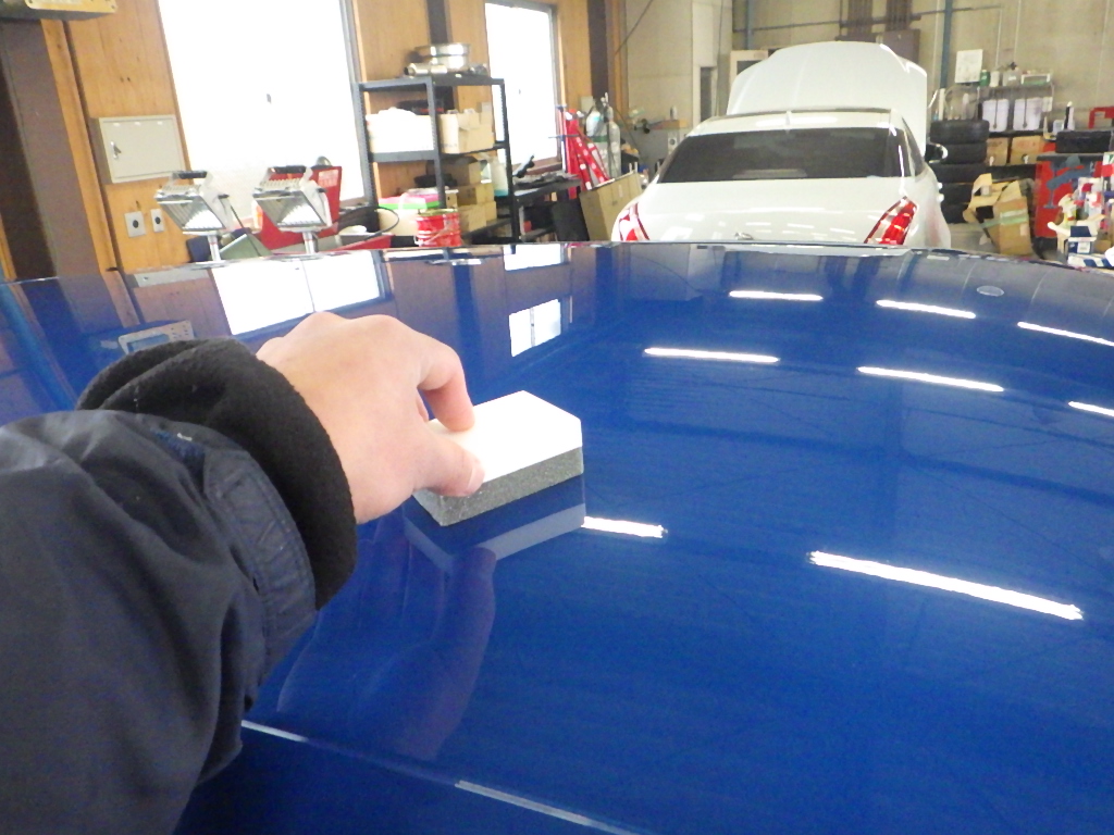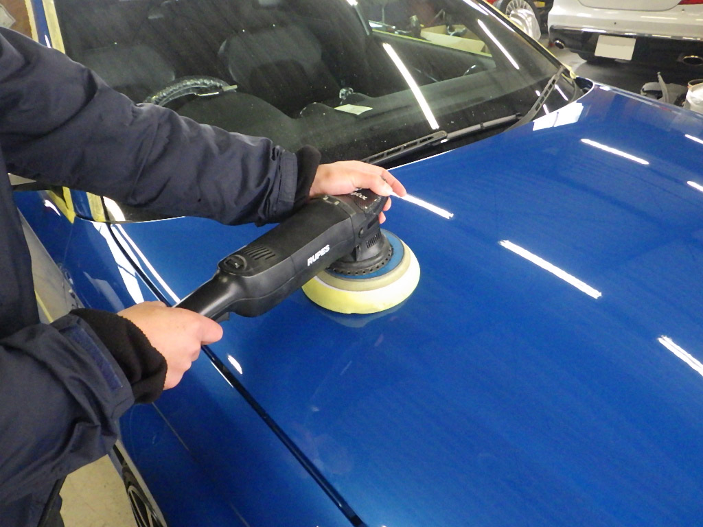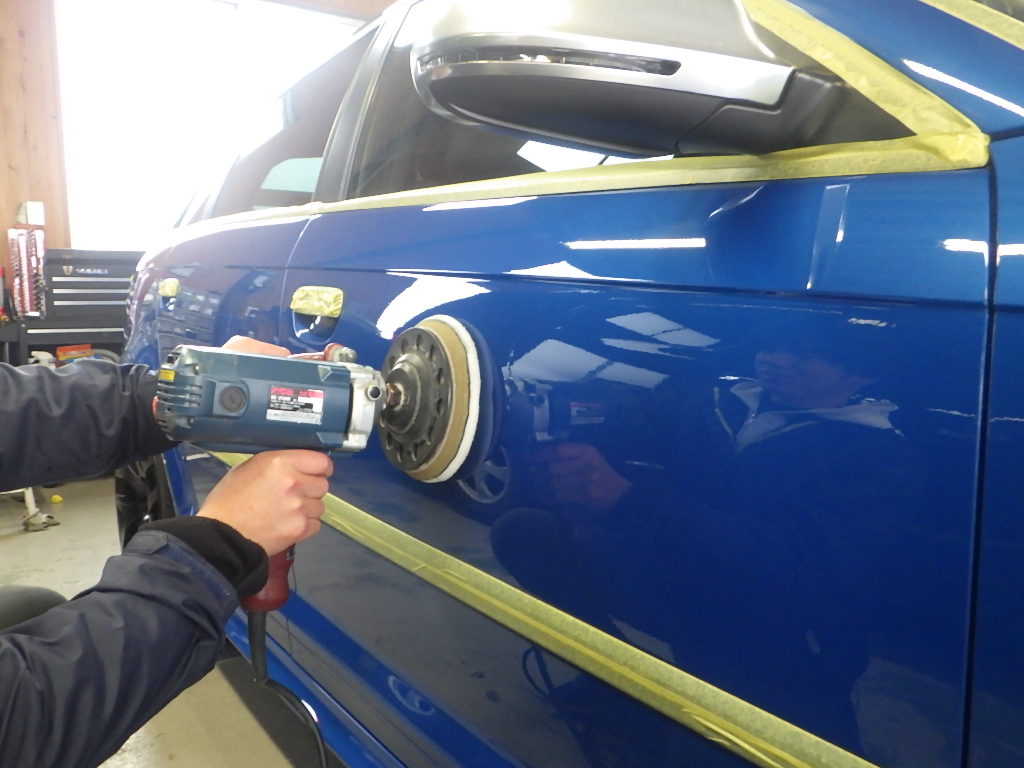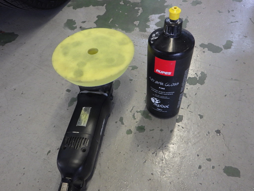 マスキング作業の後、ポリッシャーを使用し磨き作業を行いました。