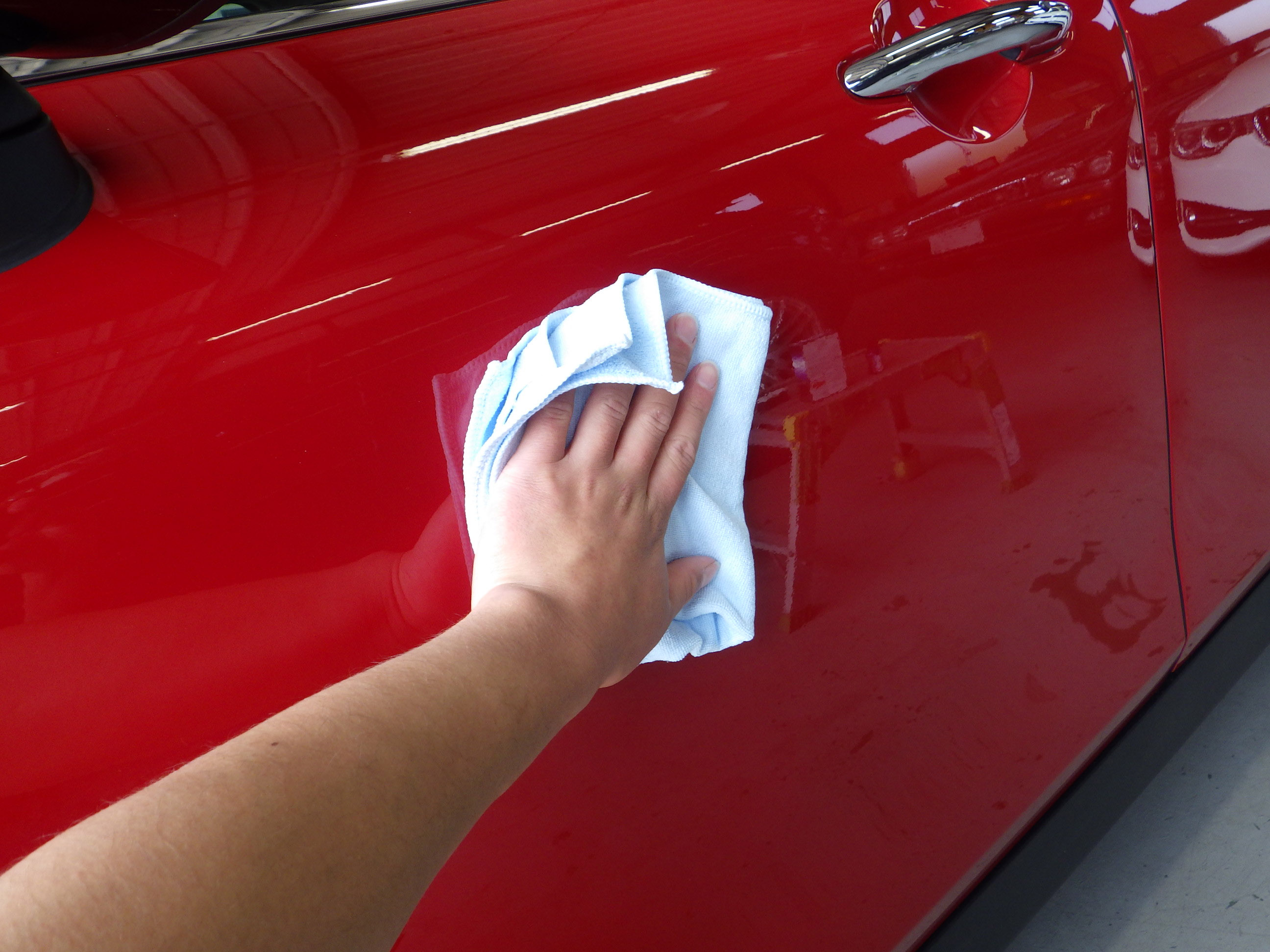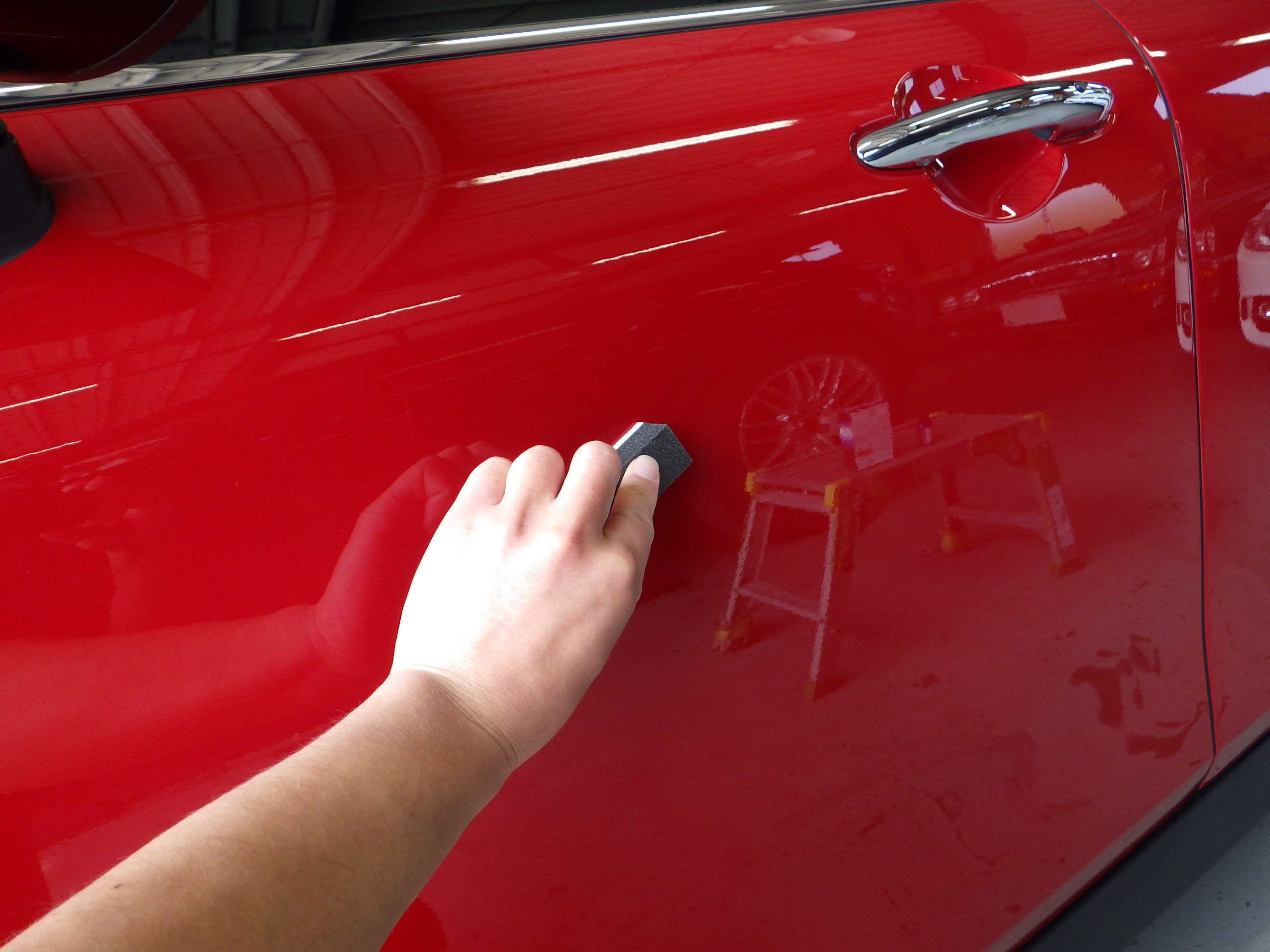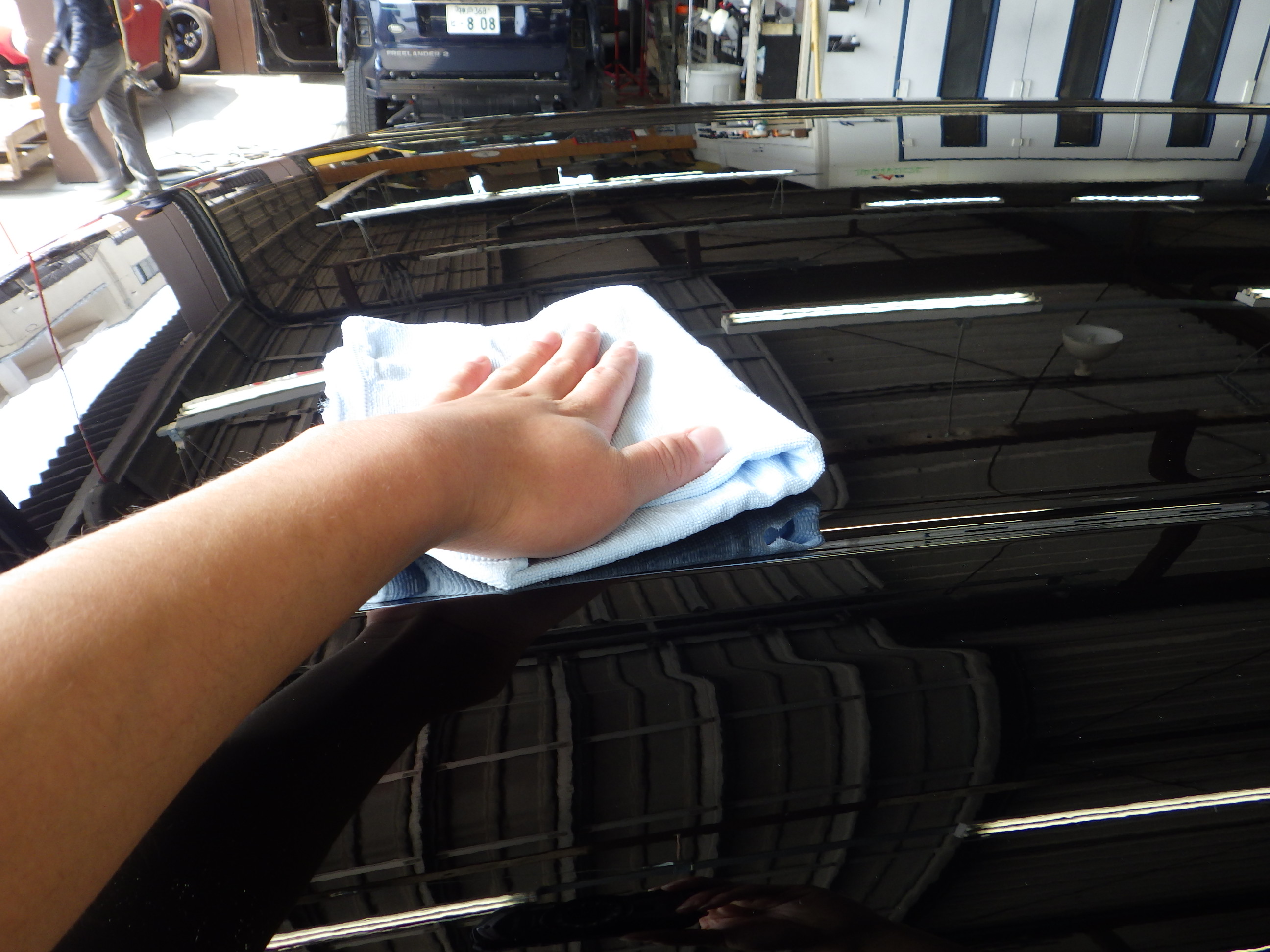 マスキング作業の後、ポリッシャーを使用し磨き作業を行いました。