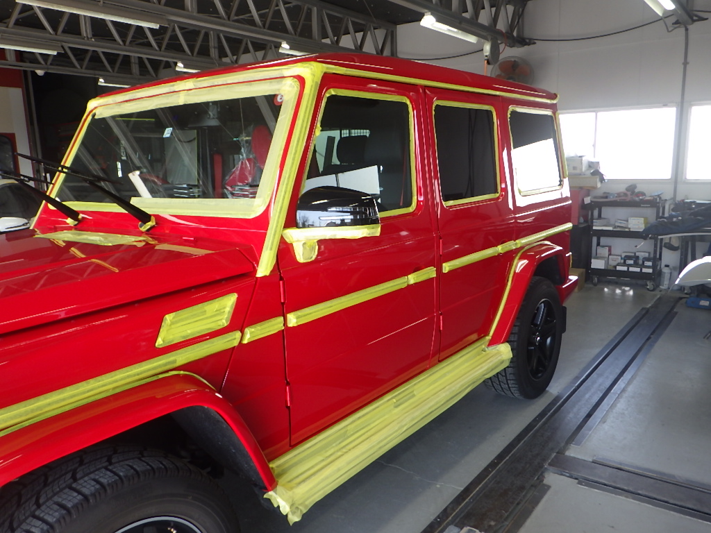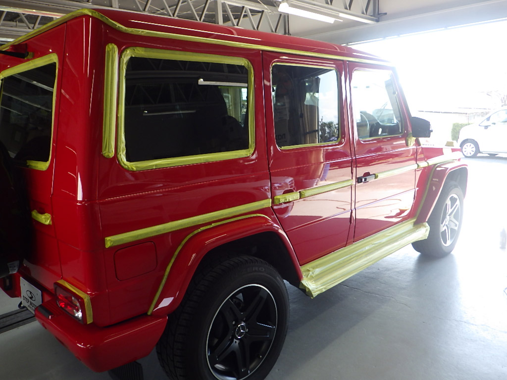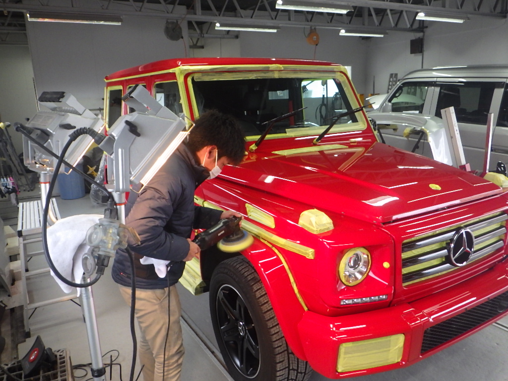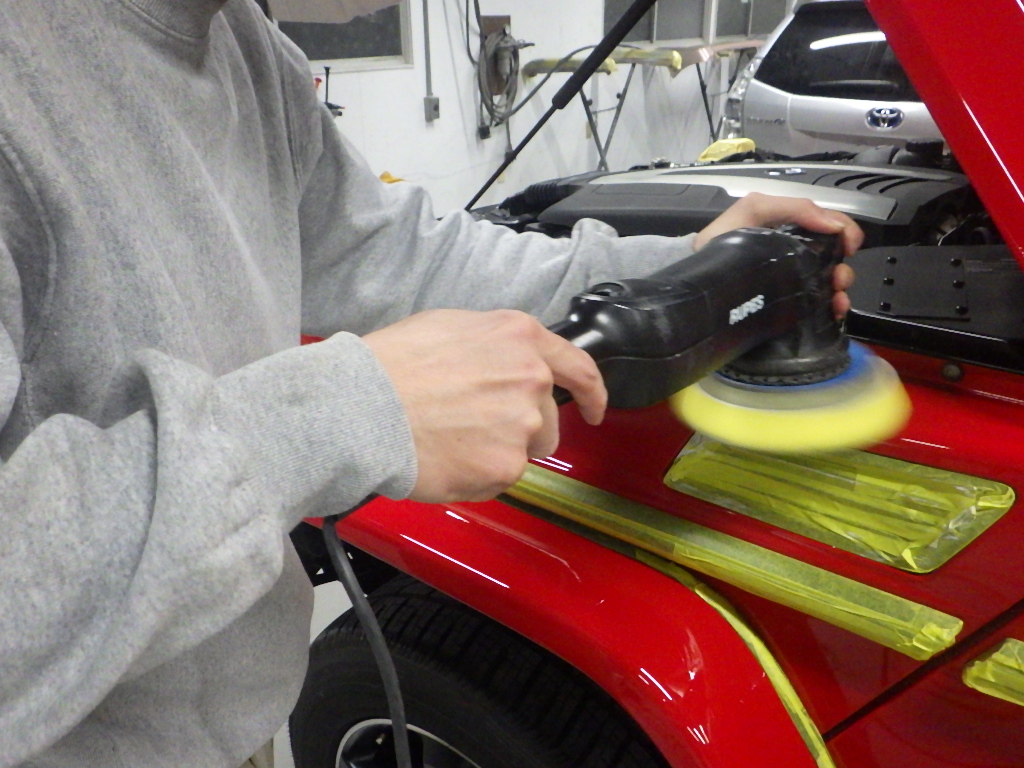 マスキング作業の後、ポリッシャーを使用して磨き作業を行いました。