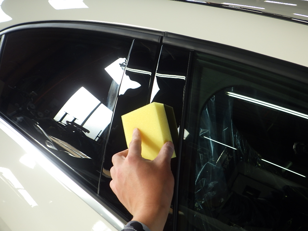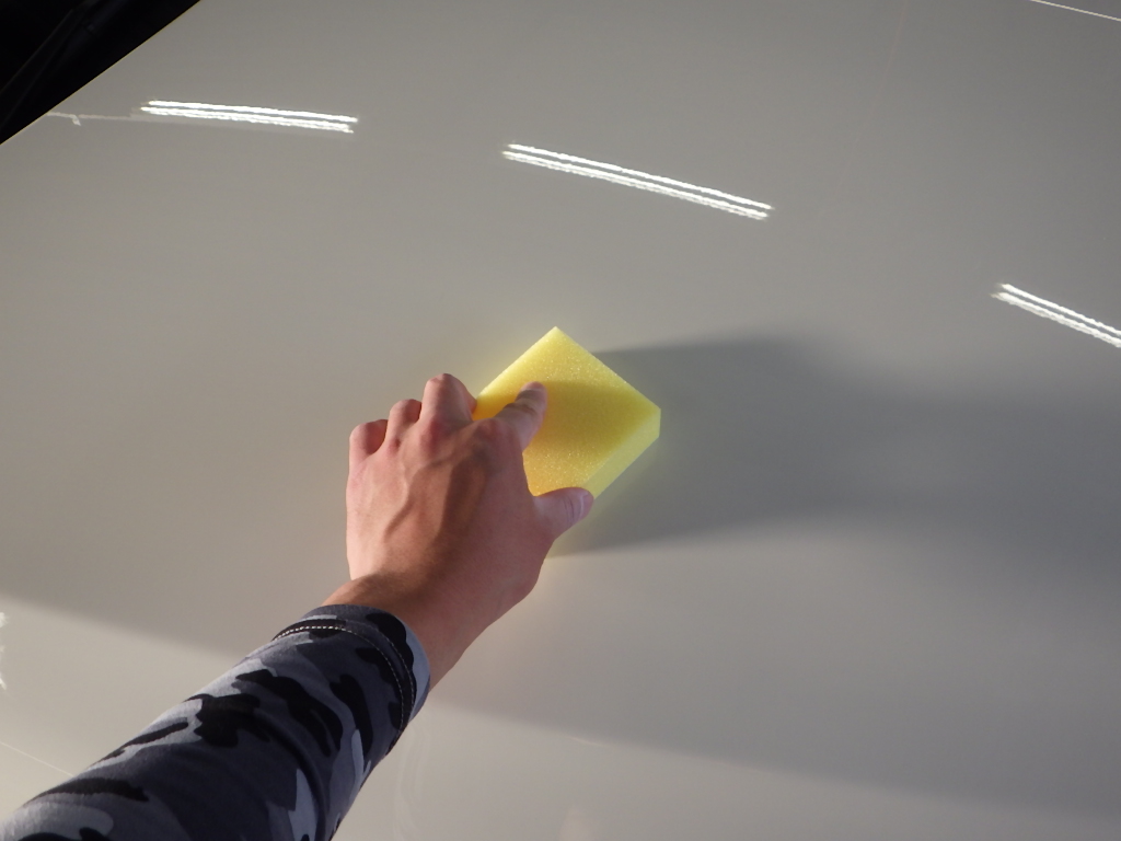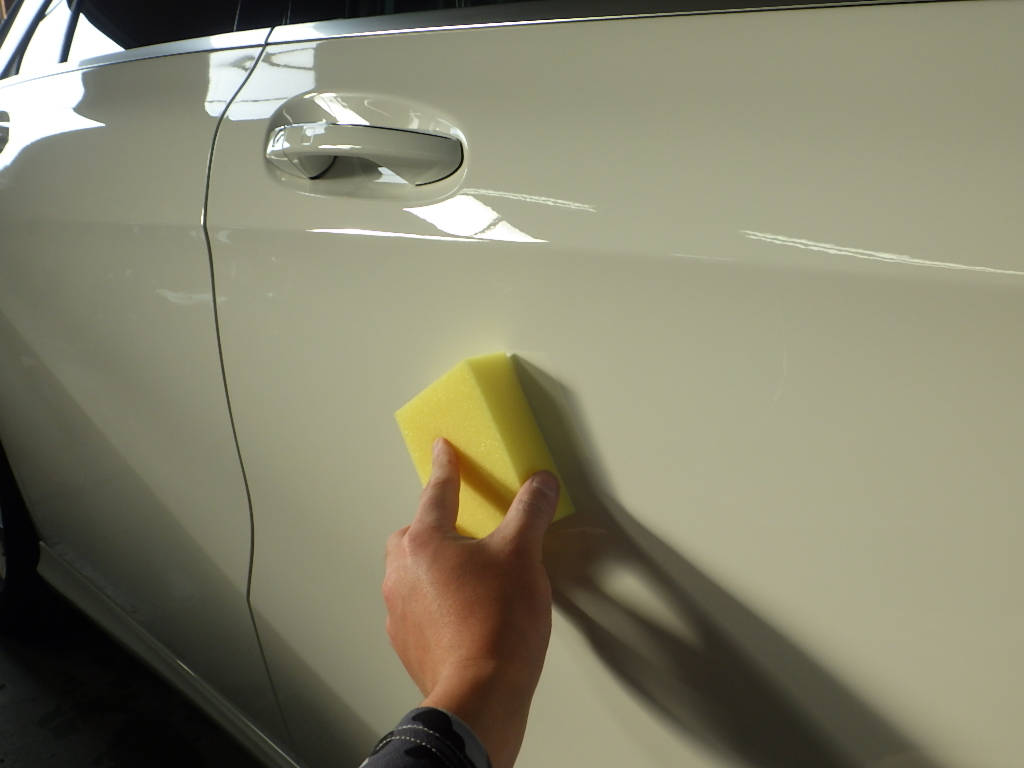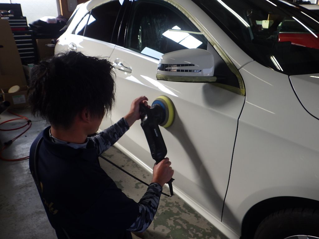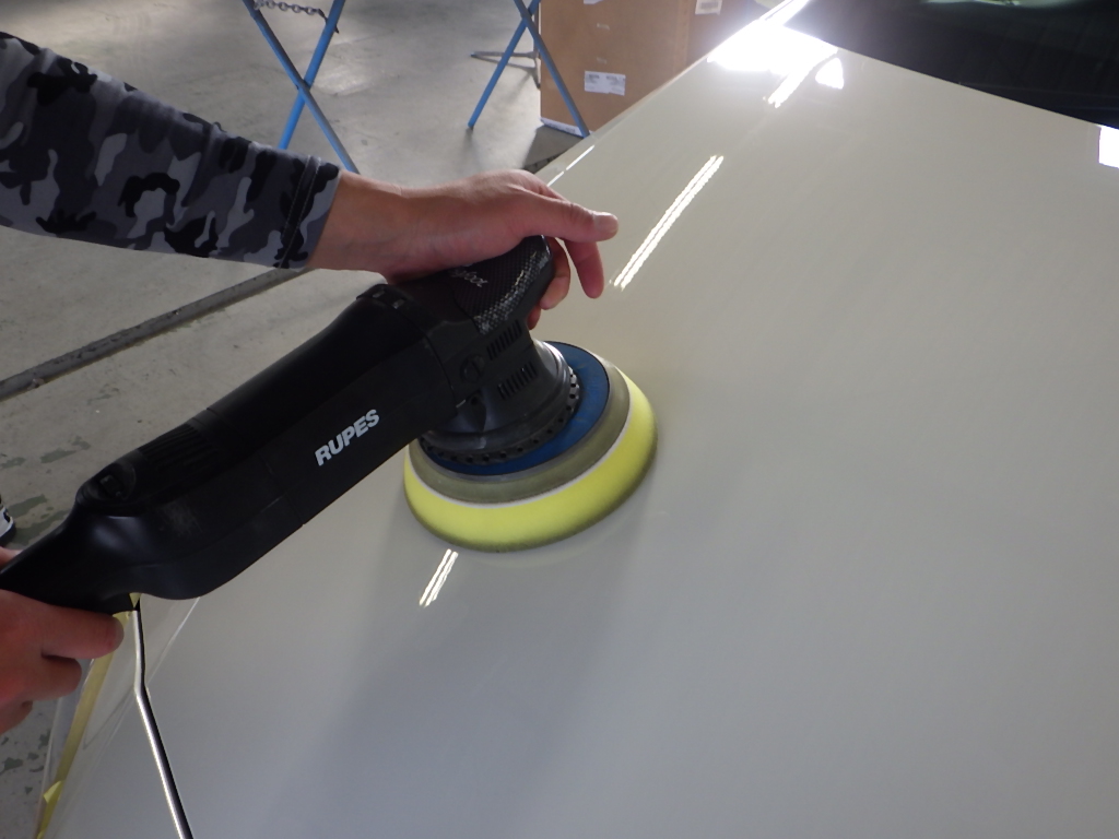 マスキング作業の後、ポリッシャーを使用し磨き作業を行いました。