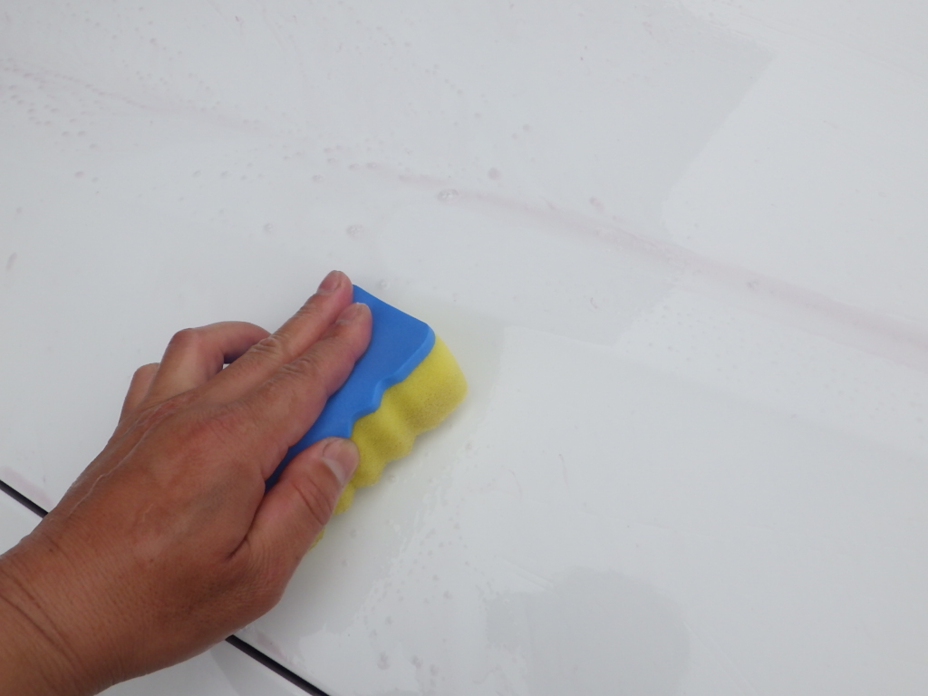 洗い流した後、メンテナンスクリーナーを使用して、汚れ、ウォータースポットの除去作業を行いました。
