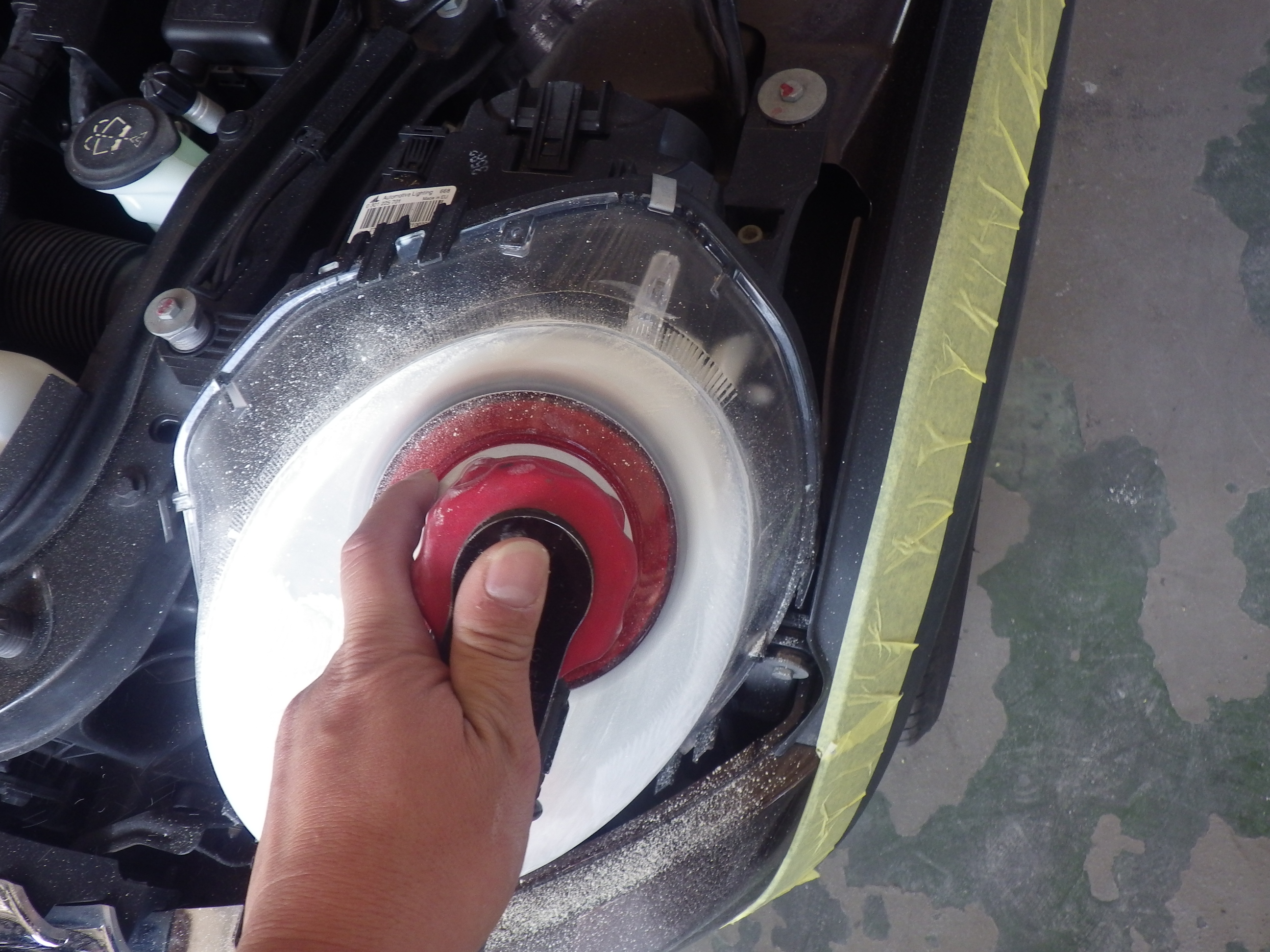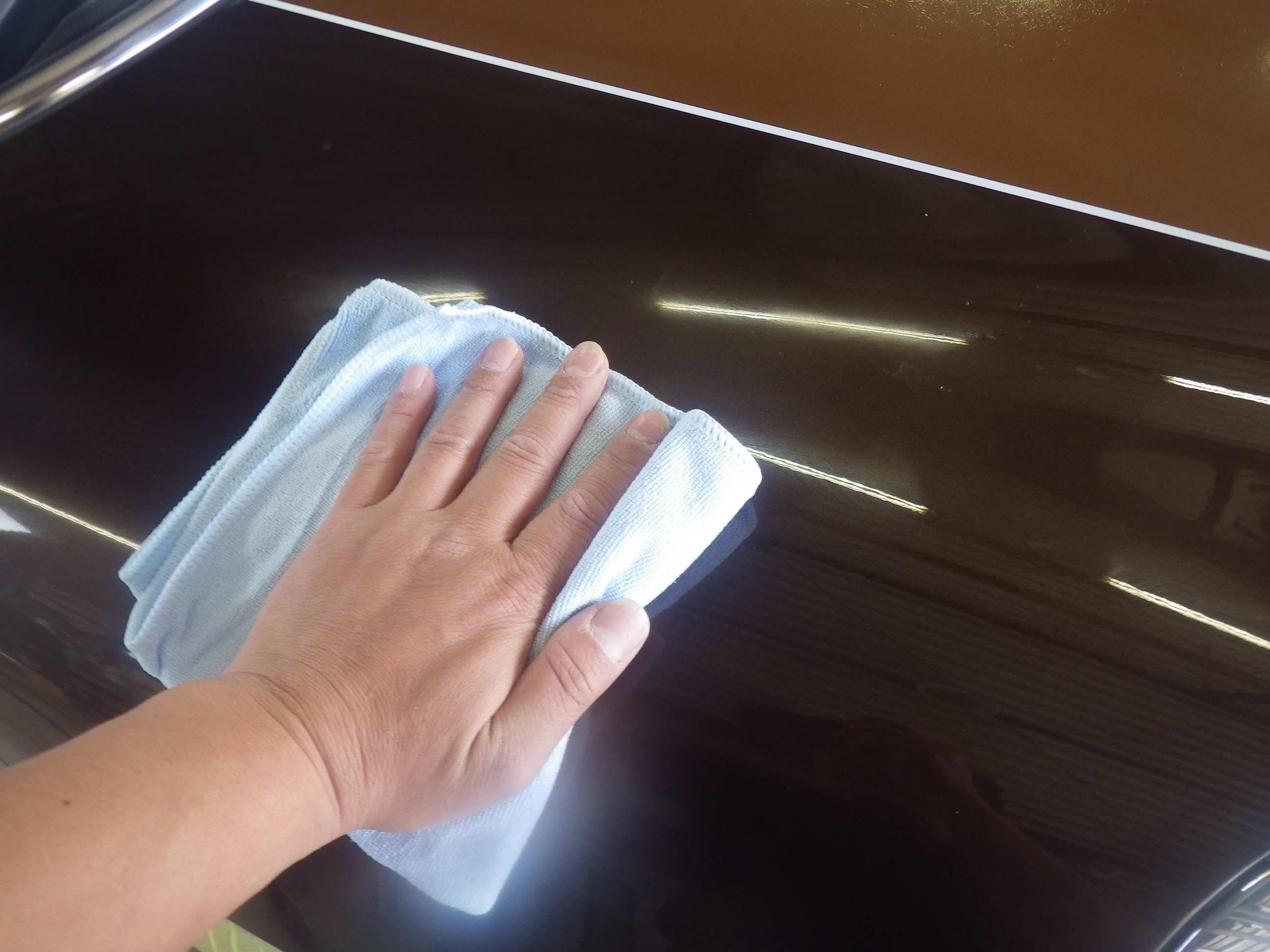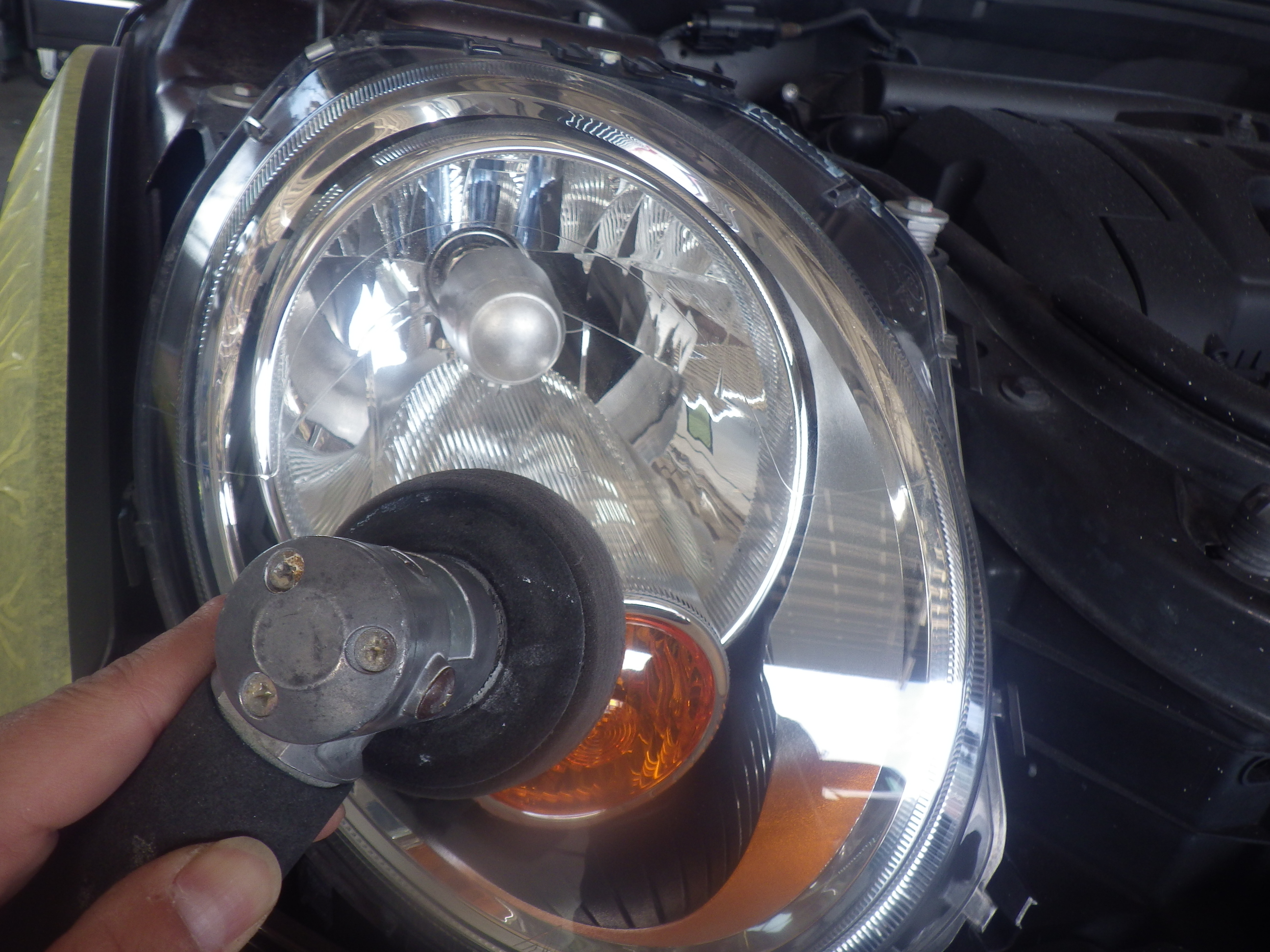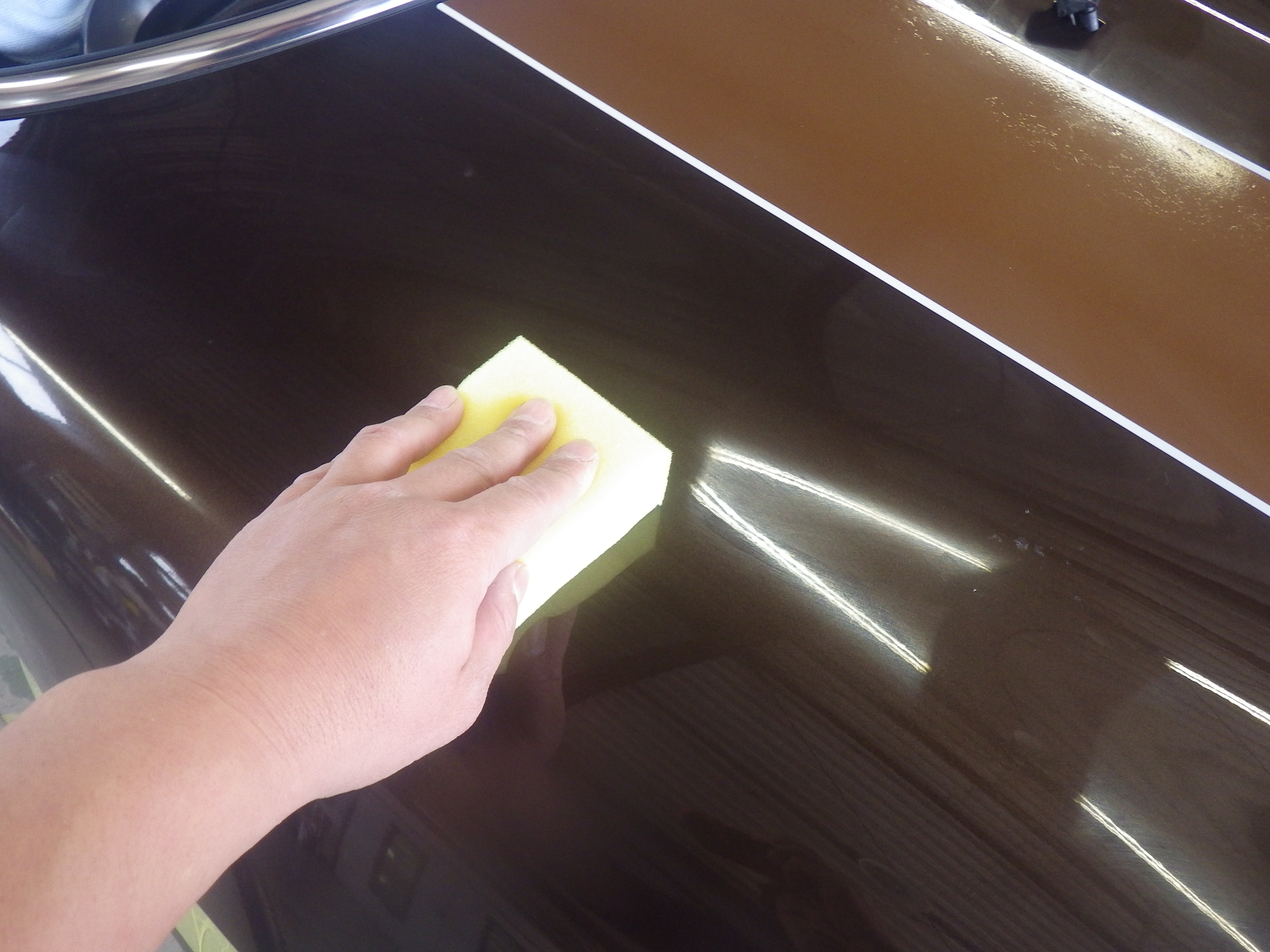 マスキング作業の後、ポリッシャーを使用し磨き作業を行いました。
