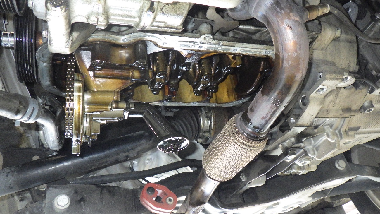 エンジンオイルパンを取り外した状態になります。