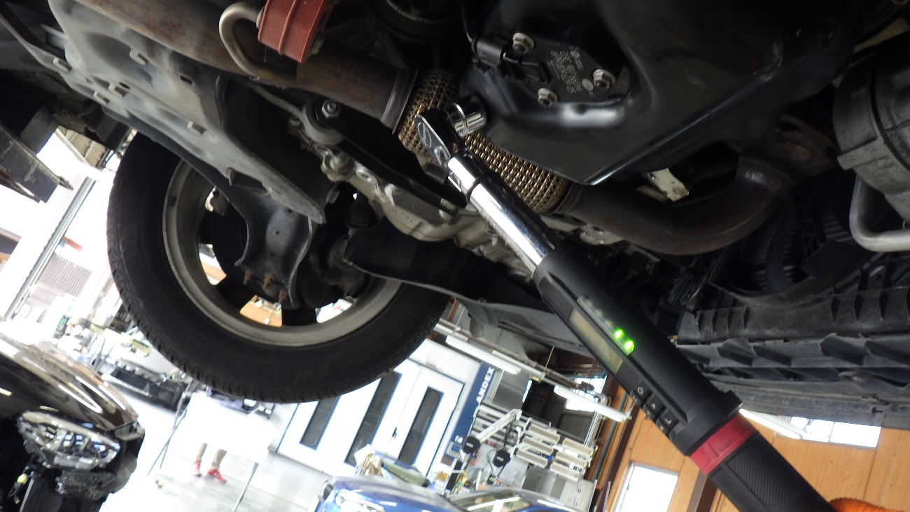 エンジンオイルパンのドレーンパッキンの締め付けを規定トルクで締め付けております。