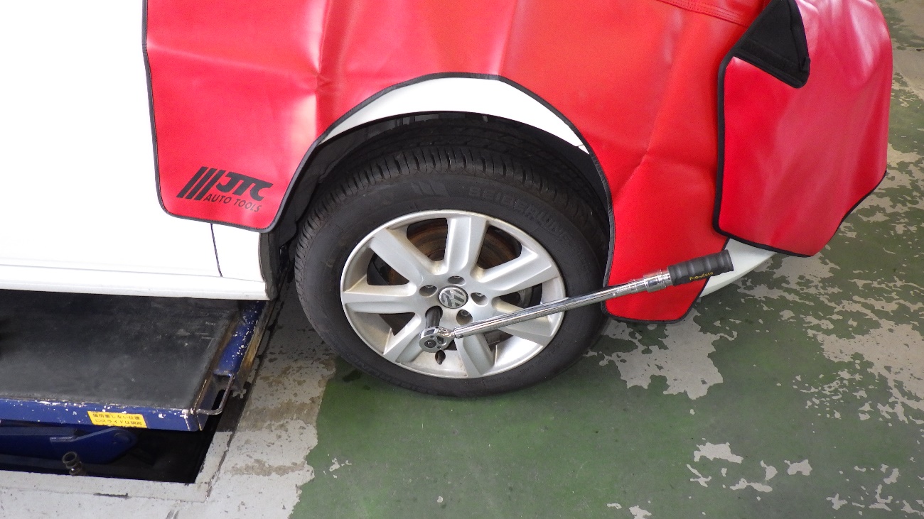 完了後ホイルナットの締め付けを規定トルクで締め付けております。