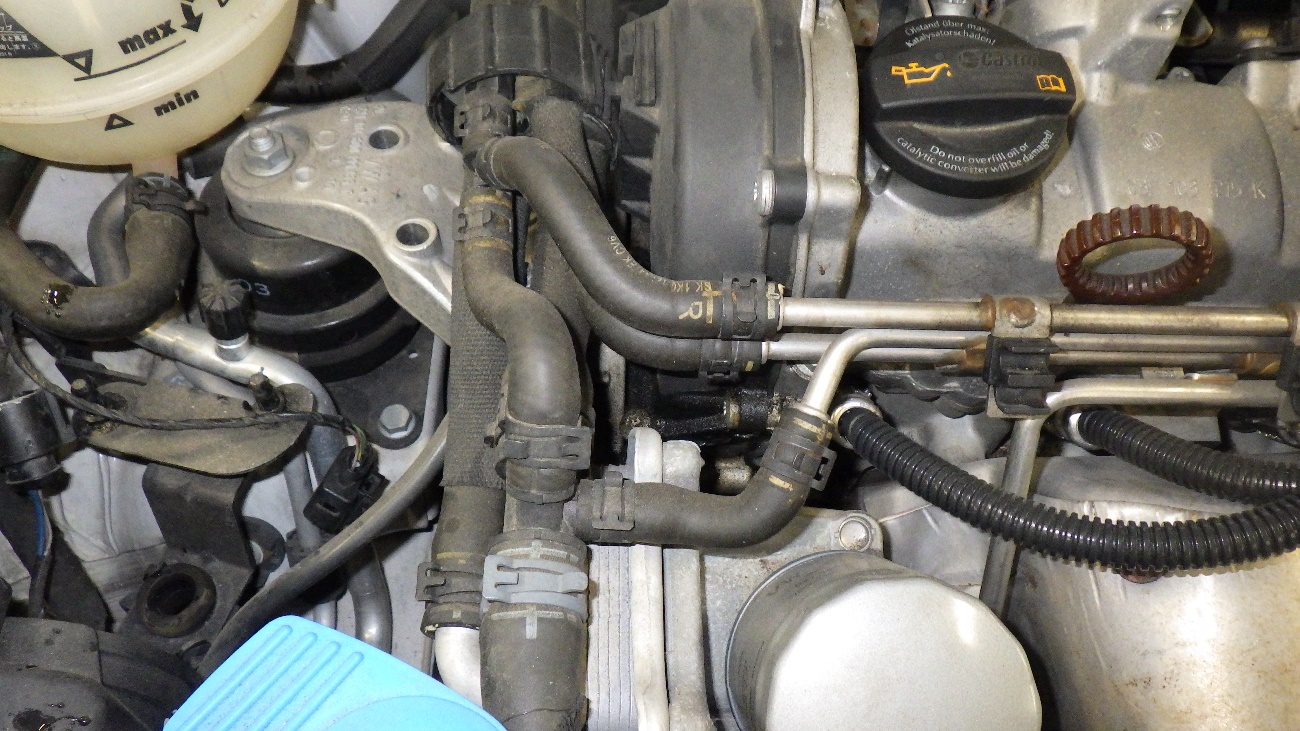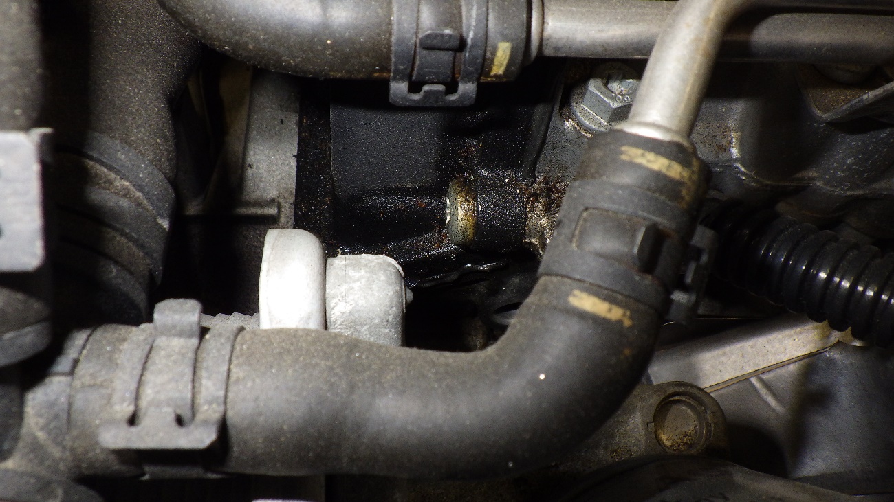 タイミングチェーンカバー上部のオイル漏れの拡大図になります。