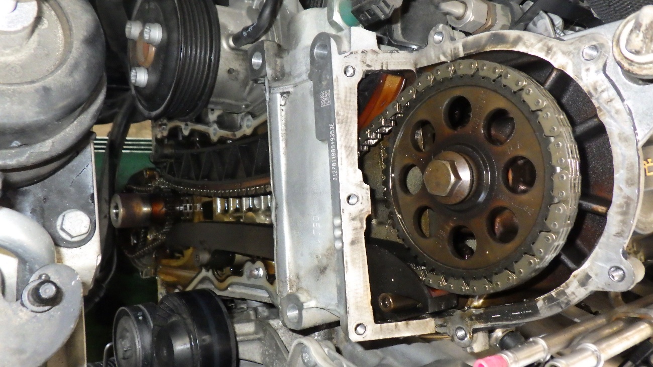 タイミングチェーンを完全に取り外した状態になります。