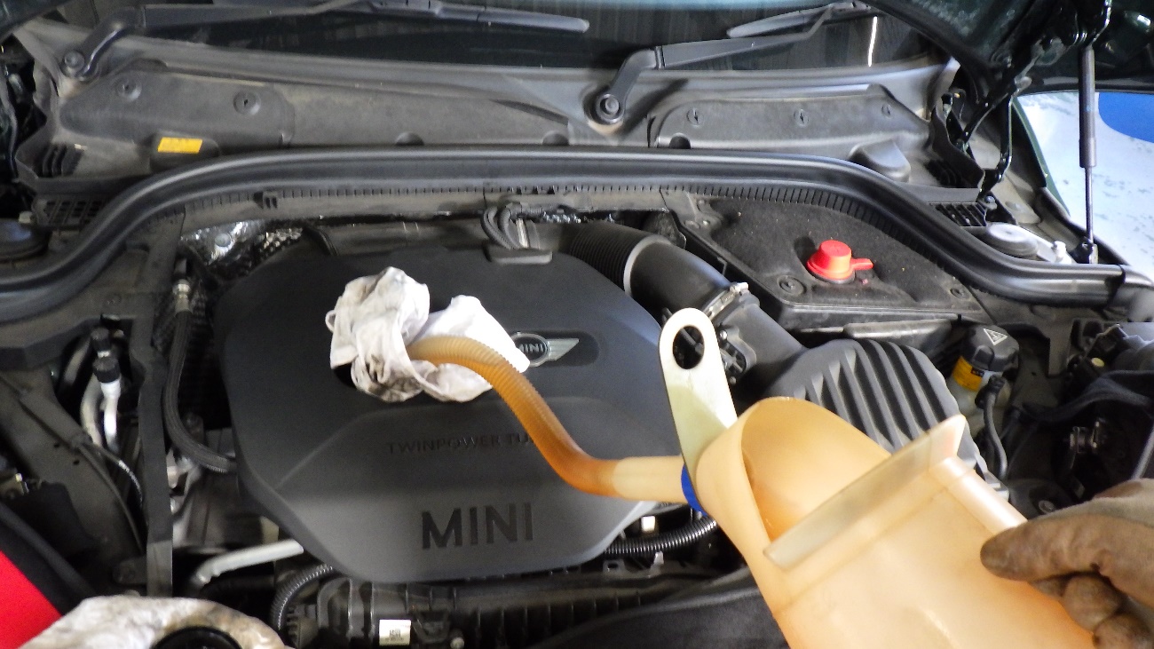 エンジンオイルを補給している状態です。