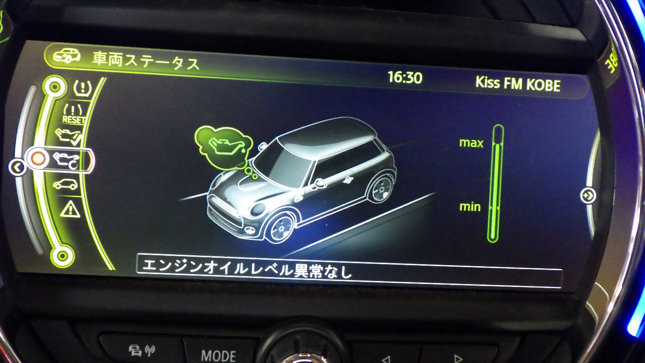 エンジン暖気後にエンジンオイル量のチェックを行っております。