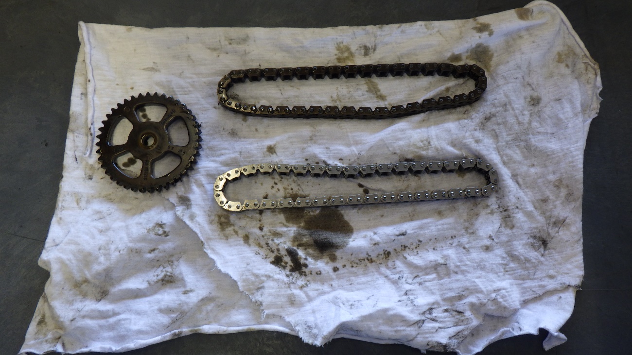 タイミングチェーンを完全に取り外した状態になります。