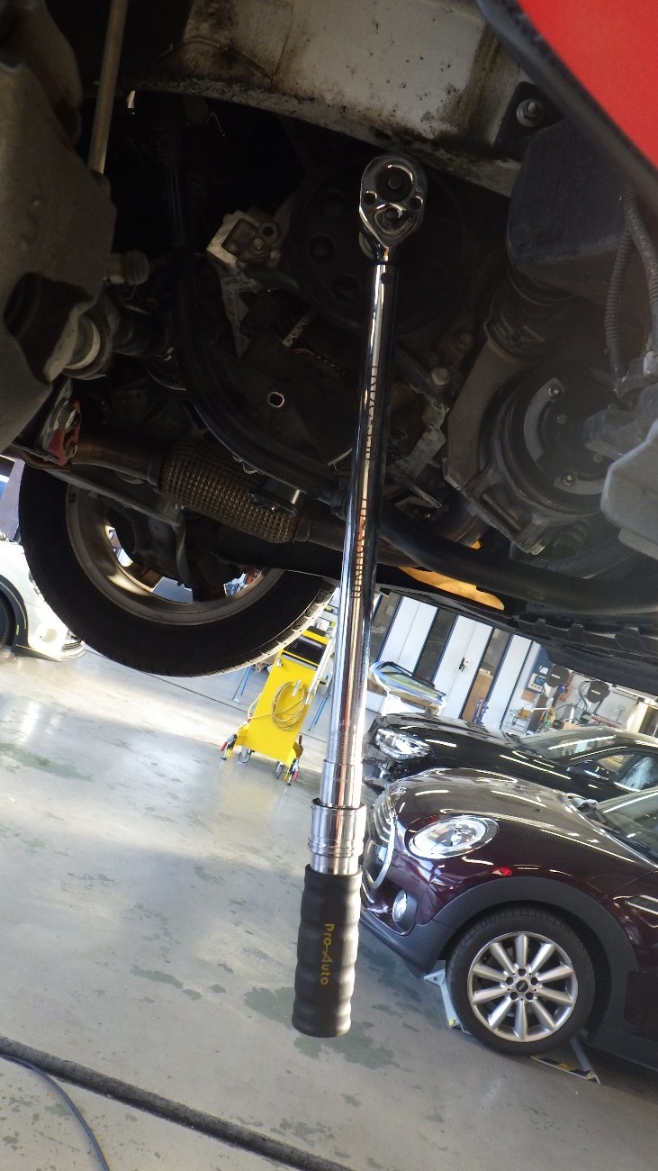 クランクプーリーの締め付けを規定トルクで締め付けております。