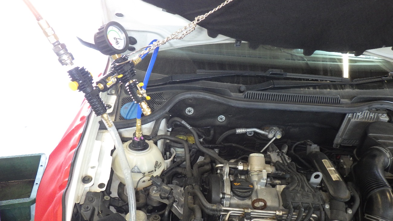 右エンジンマウントを組付け後LLCのエア抜きを行って参ります。