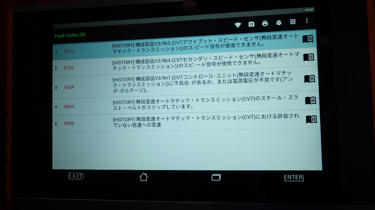 CVTに複数のエラーが見受けられます。CVT内部の不具合による症状だと思われます。