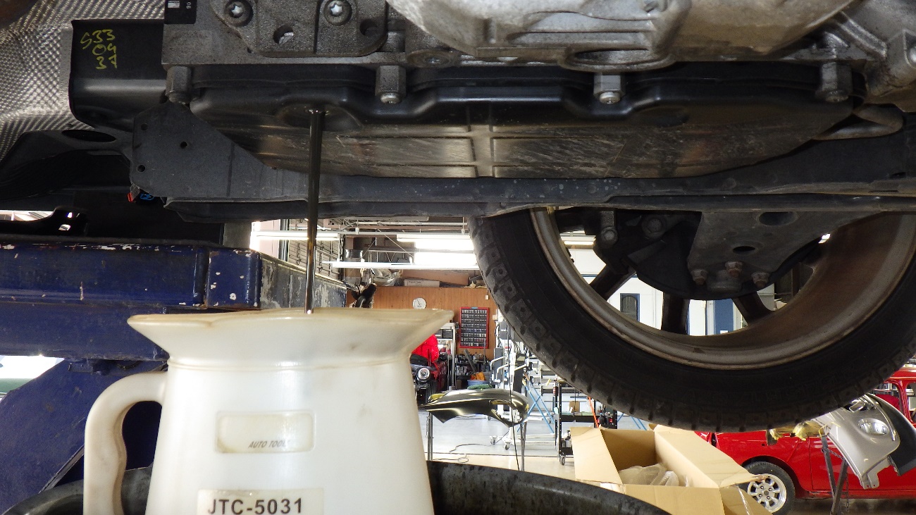 組付け後純正のCVTオイルを注入して参ります。