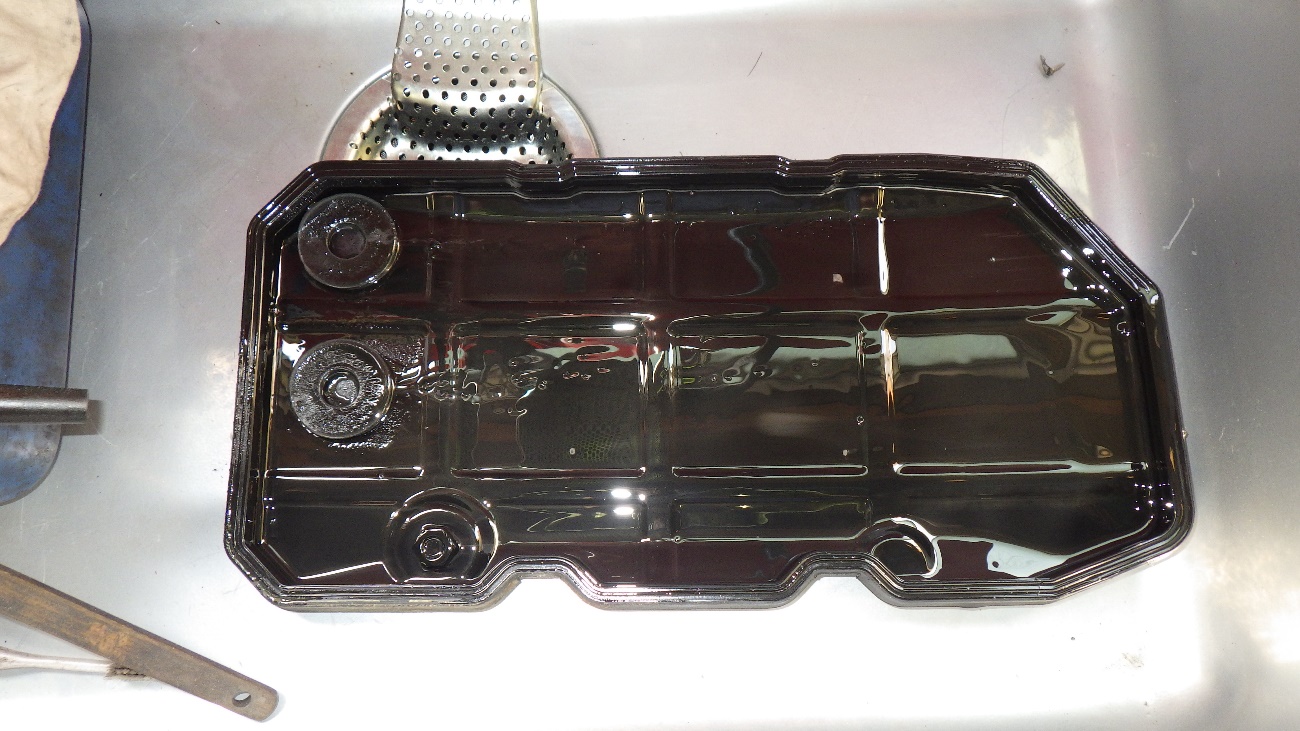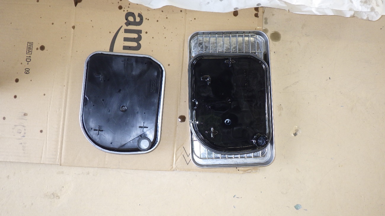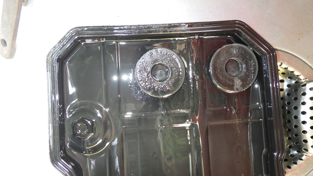 取り外したCVTオイルパンになります。左上の磁石にも多量の鉄粉が付着しております。