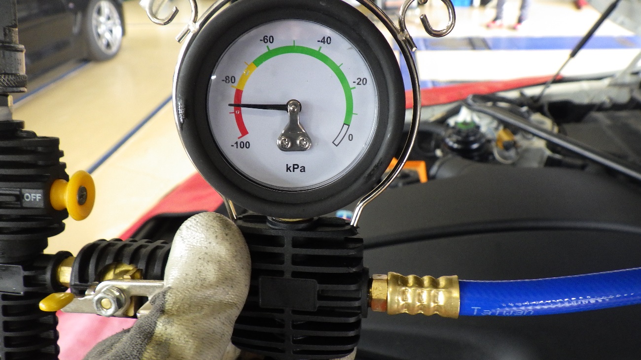 負圧の状態で保持して、リークのチェックを実施。