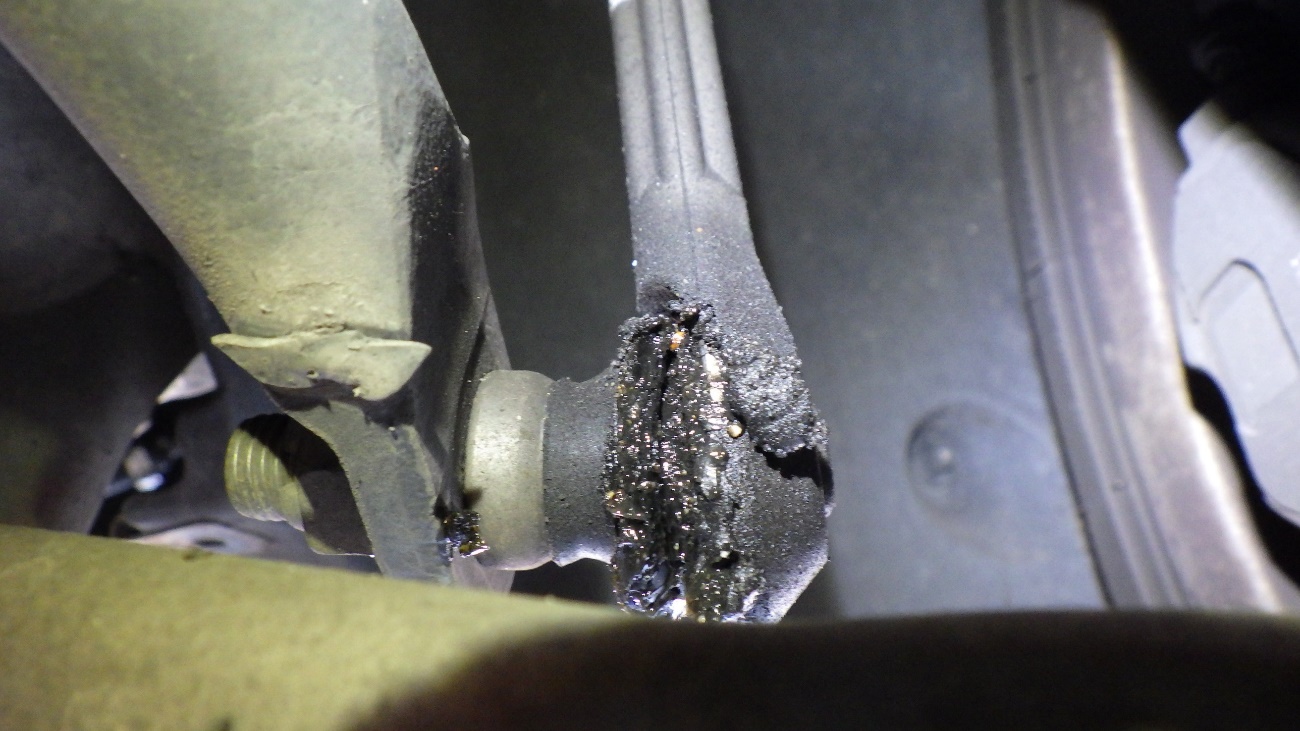 交換前のスタビライザ―リンクはブーツの亀裂により