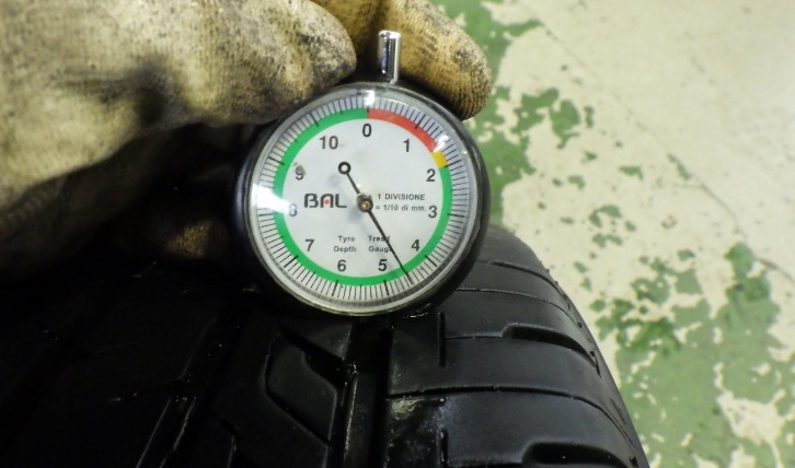 リヤタイヤ残量はスリップサインより約4.6mmです。