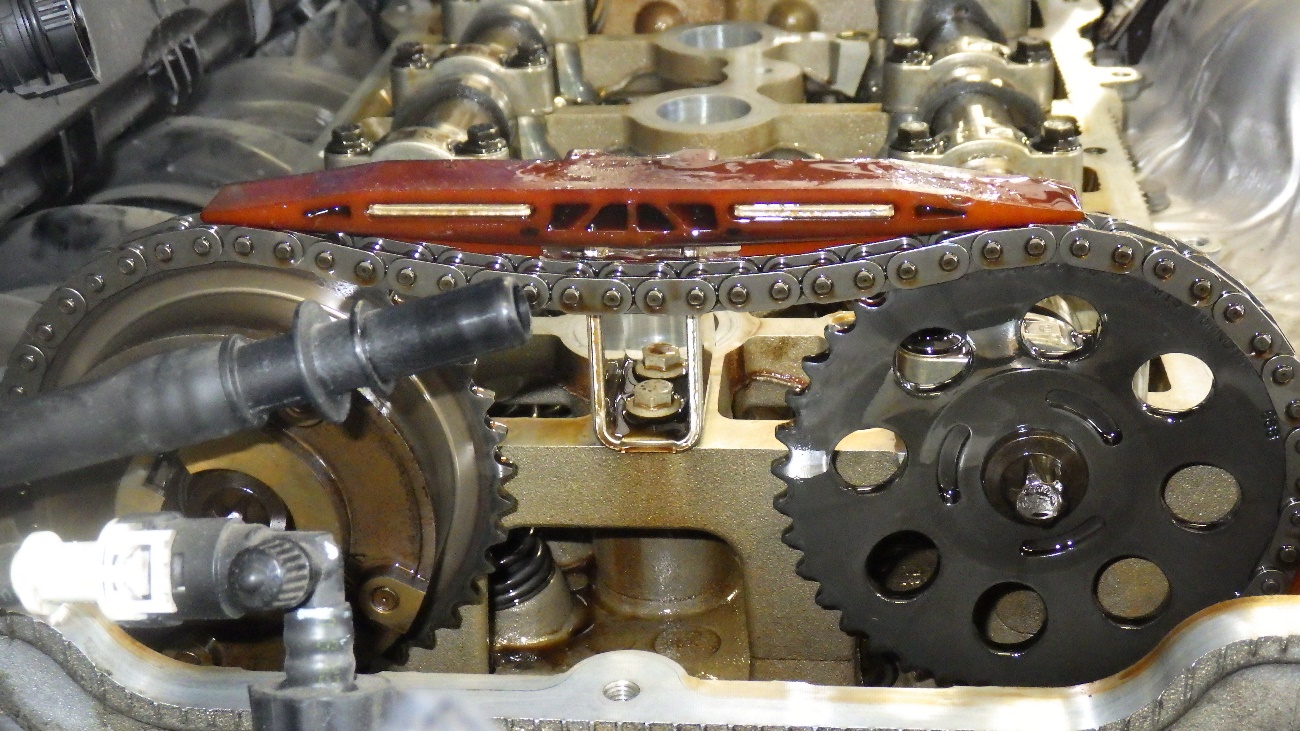 タペットカバーを取り外して、タイミングチェーンの状態です。