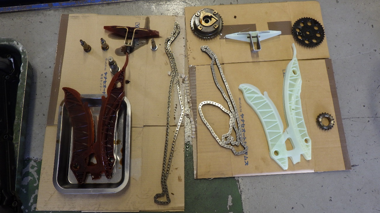 今回タイミングチェーン及び、タイミングチェーンのガイドレール、テンショナー等