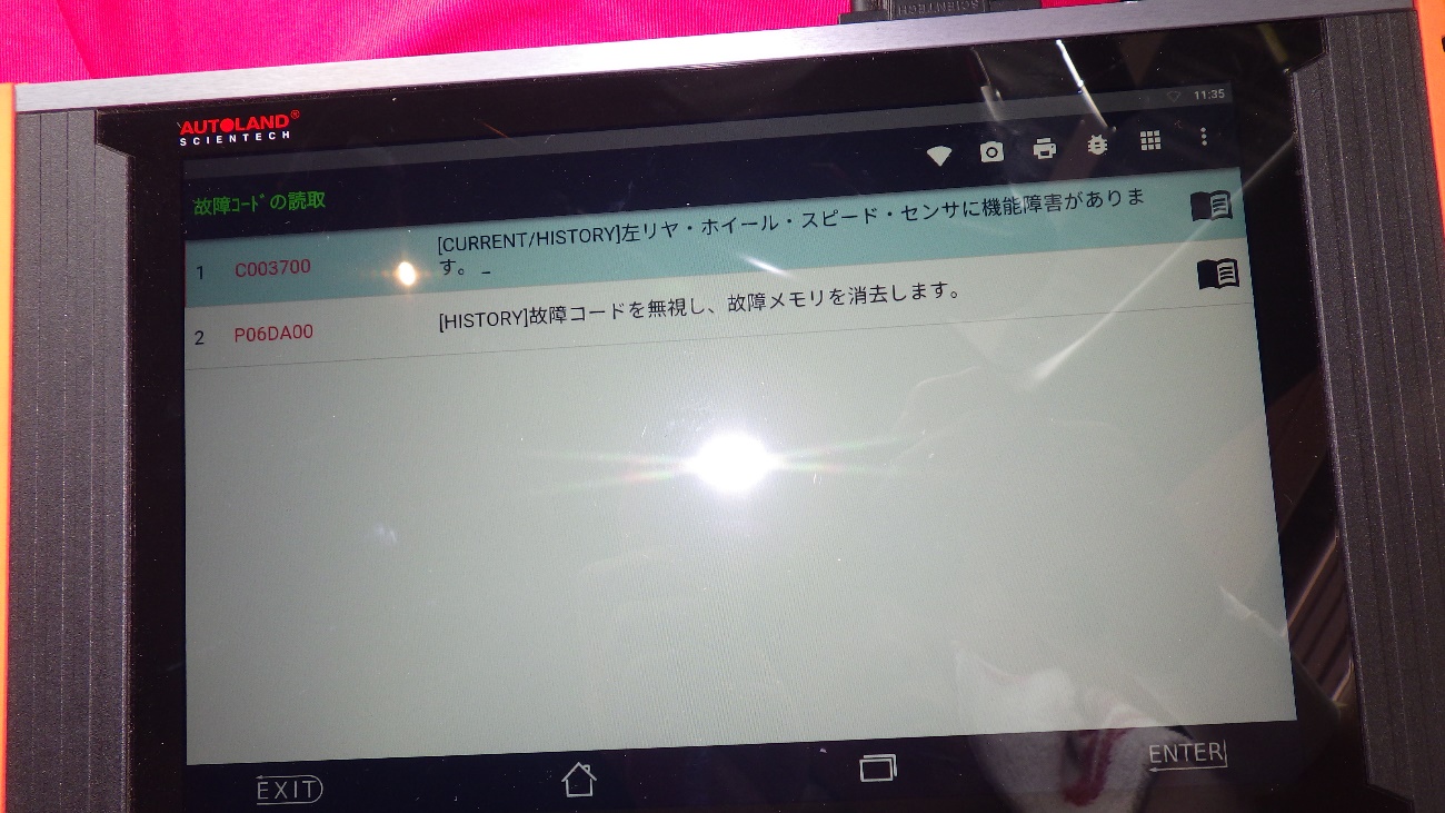 テスターで確認したところ、左リヤのスピードセンサーにエラー表示がありました。