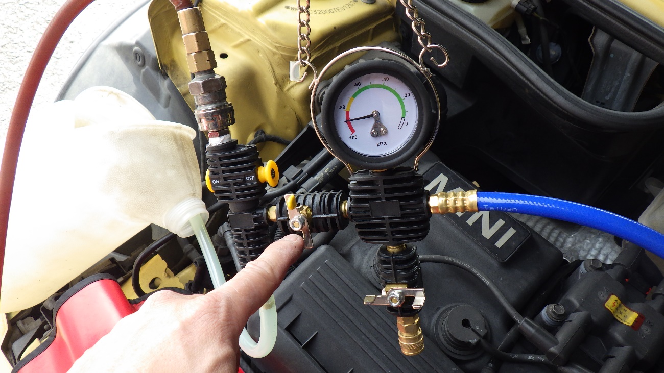 負圧が保持しているのを確認してからクーラントの充填を実施。