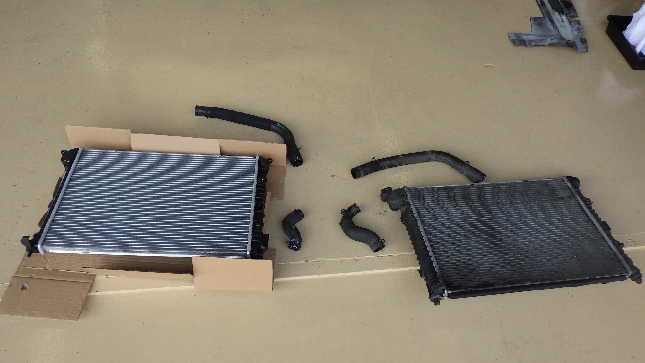新しいラジエターを組付けた状態になります。