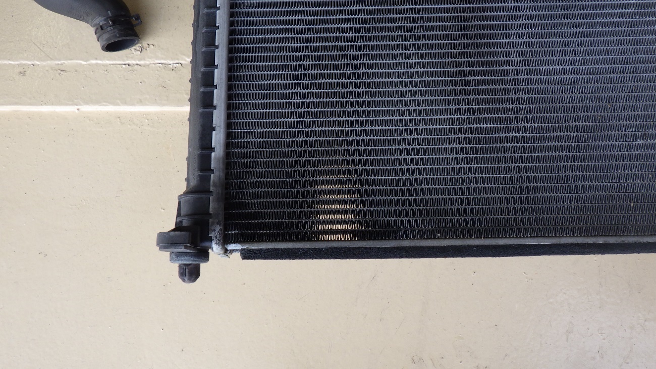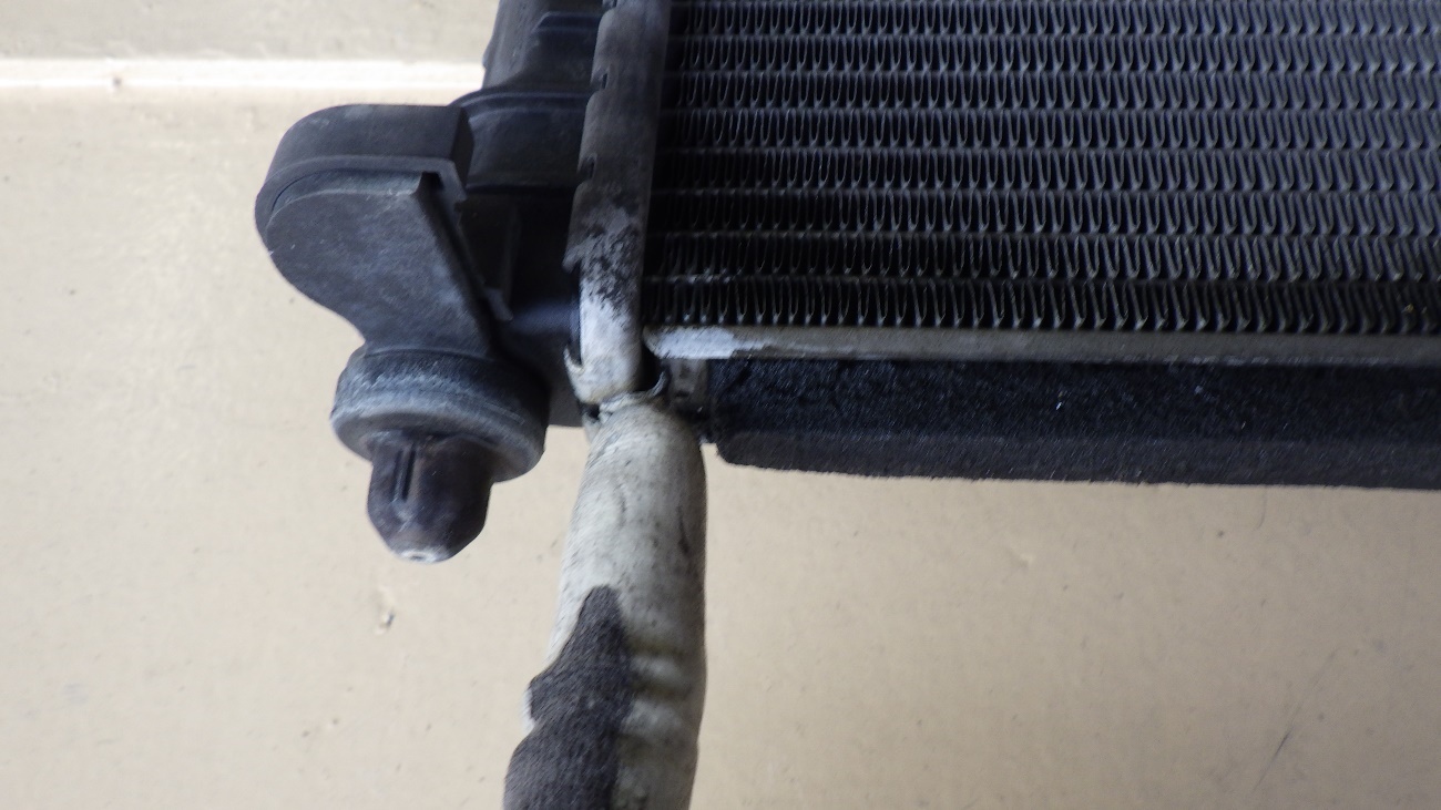 左下の角になりますが、漏れ修理が不可となりますので、ラジエターASSY交換させていただきます。