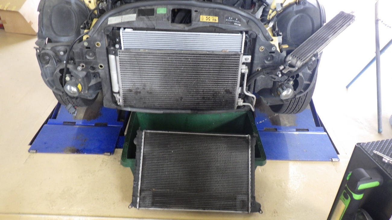 コアサポートを少しずらしてラジエターを取り外して参ります。