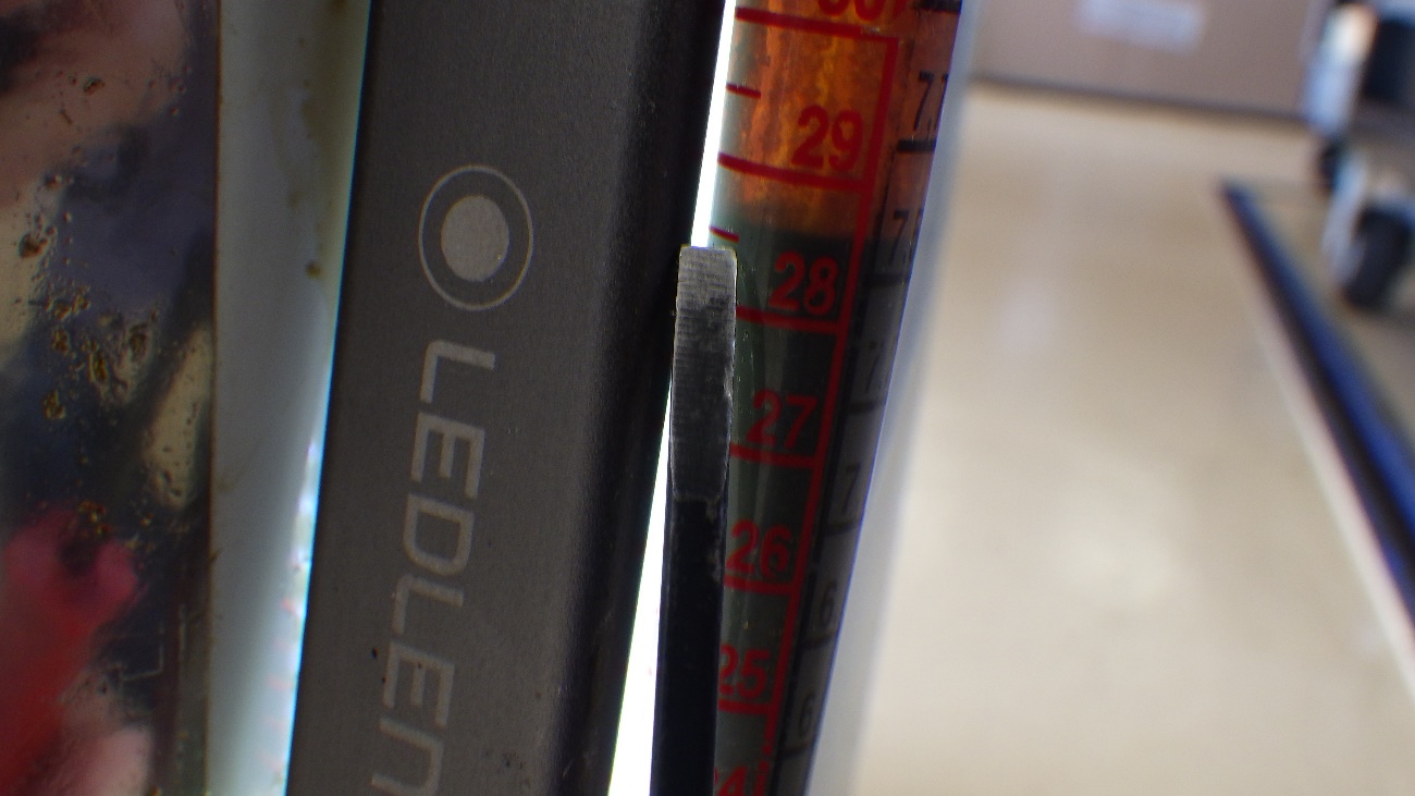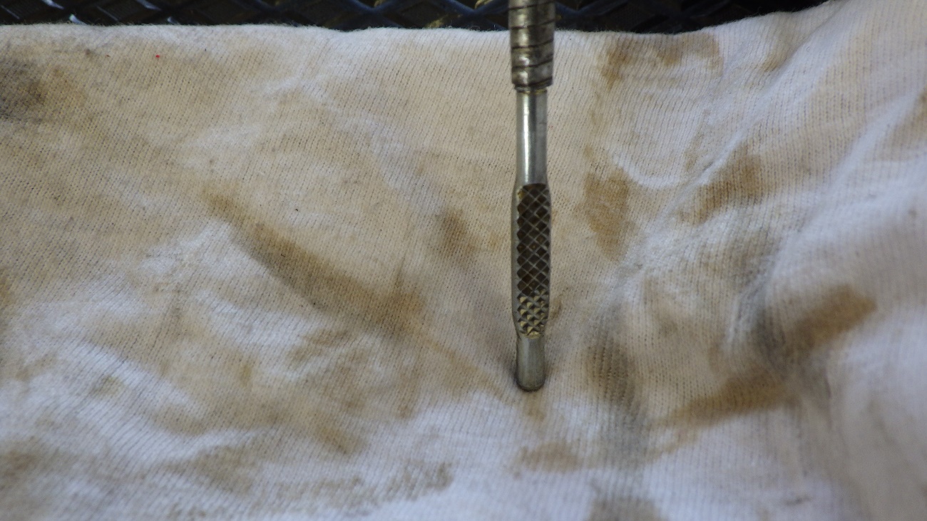 排出タンクの量が28.5を指しておりますので、この車輛から抜けたエンジンオイル量は約8.0Lでした。