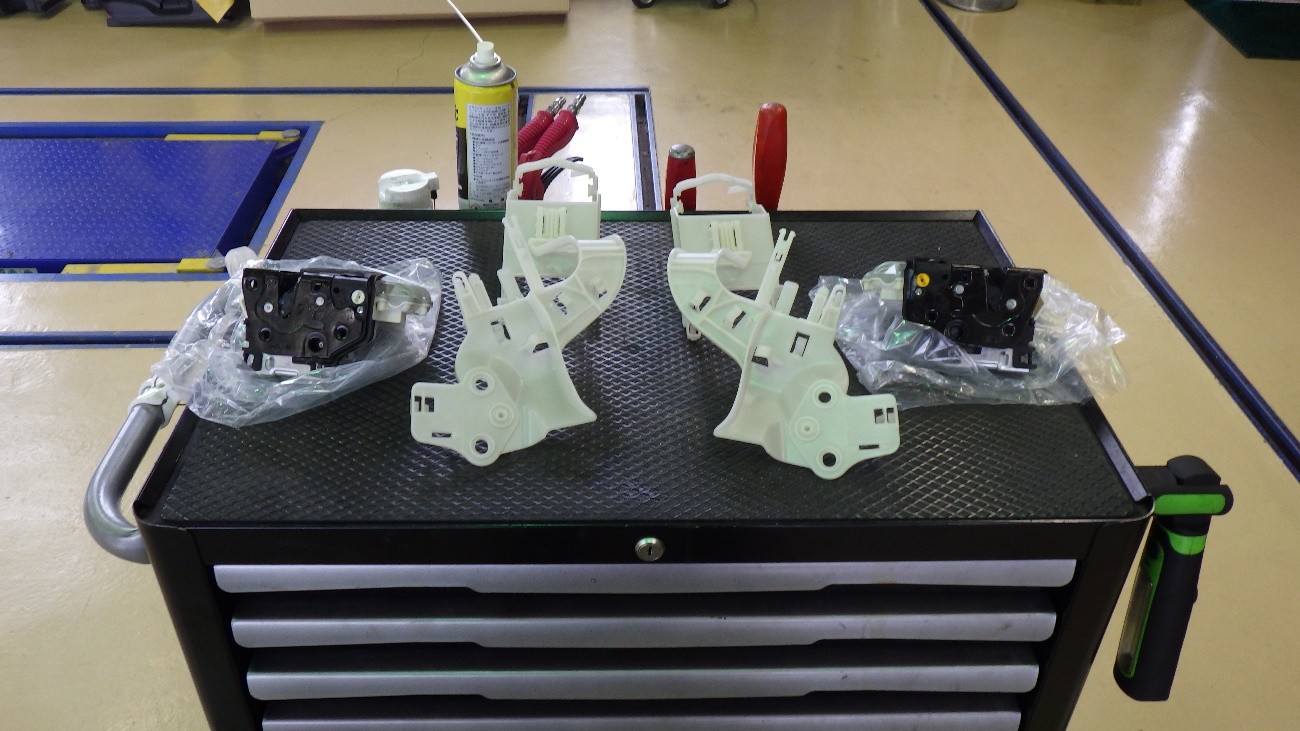 新しい左右ドアロックアクチュエーターと、その固定ホルダーになります。