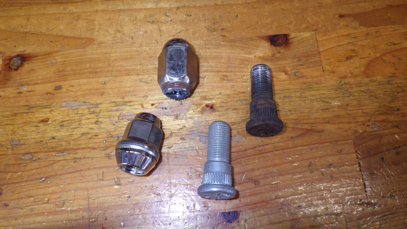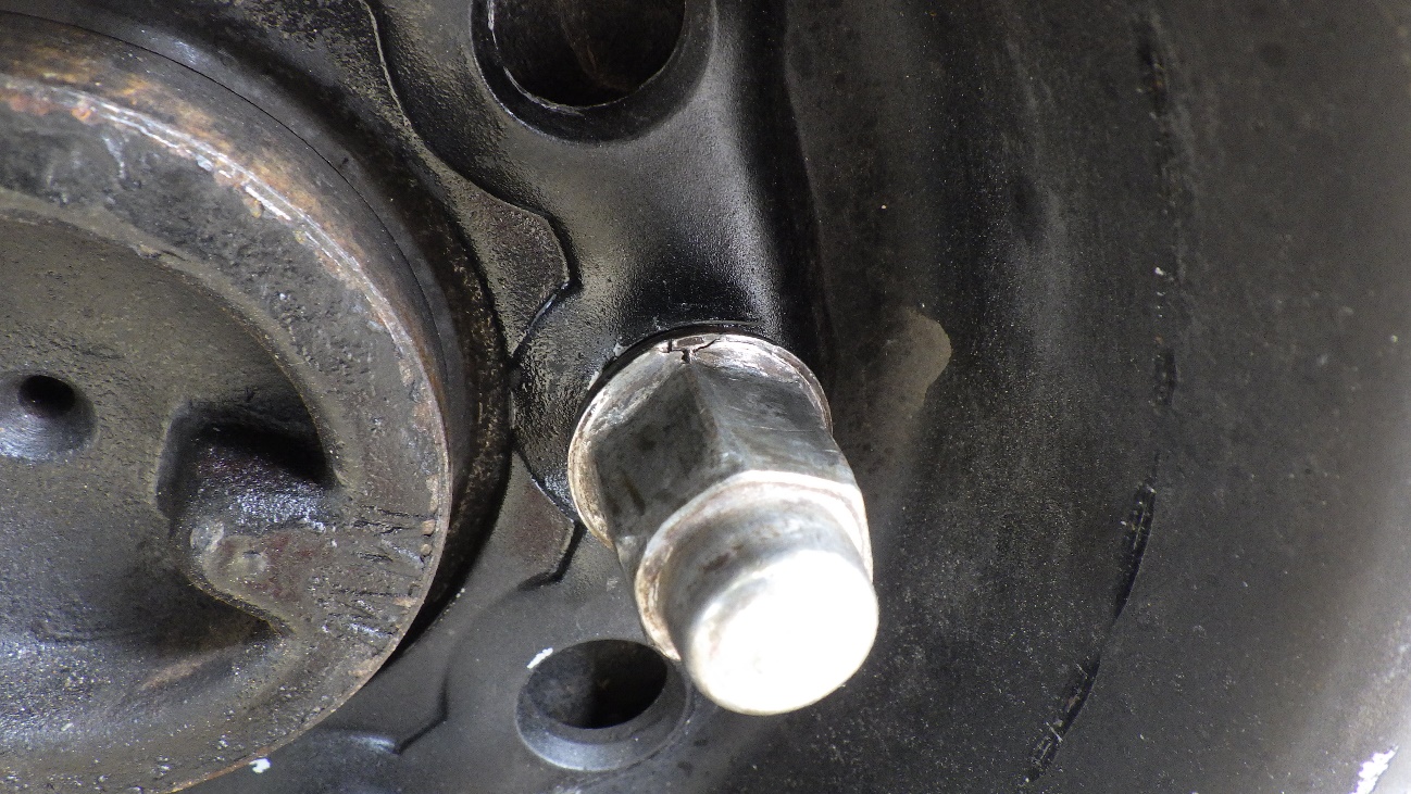 ハブボルトのねじ山がつぶれていますので、修正は不可能でした。