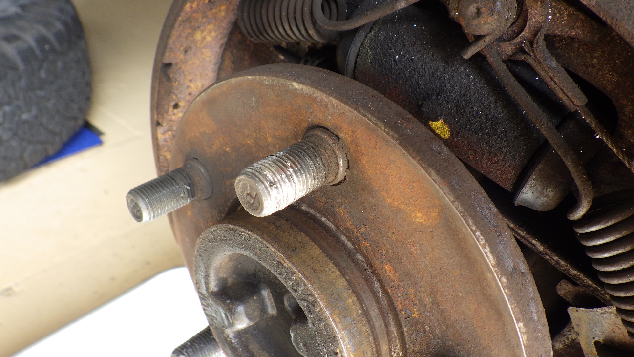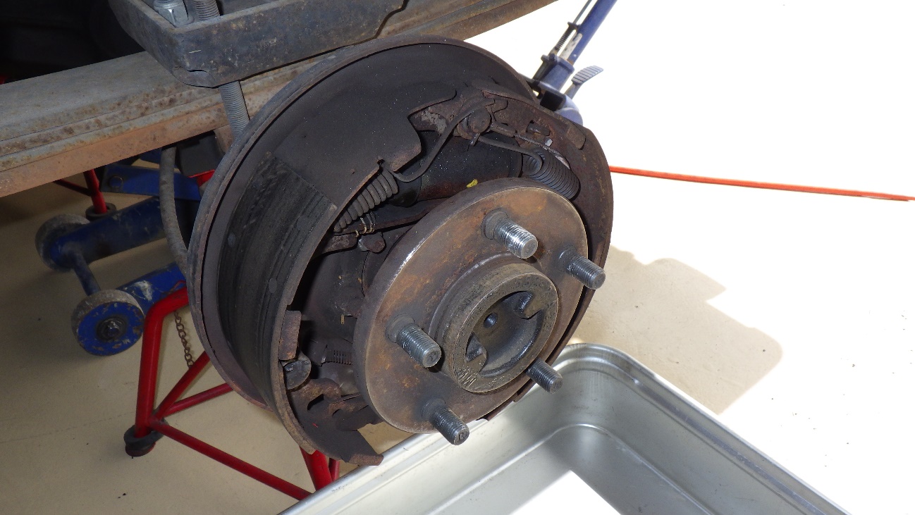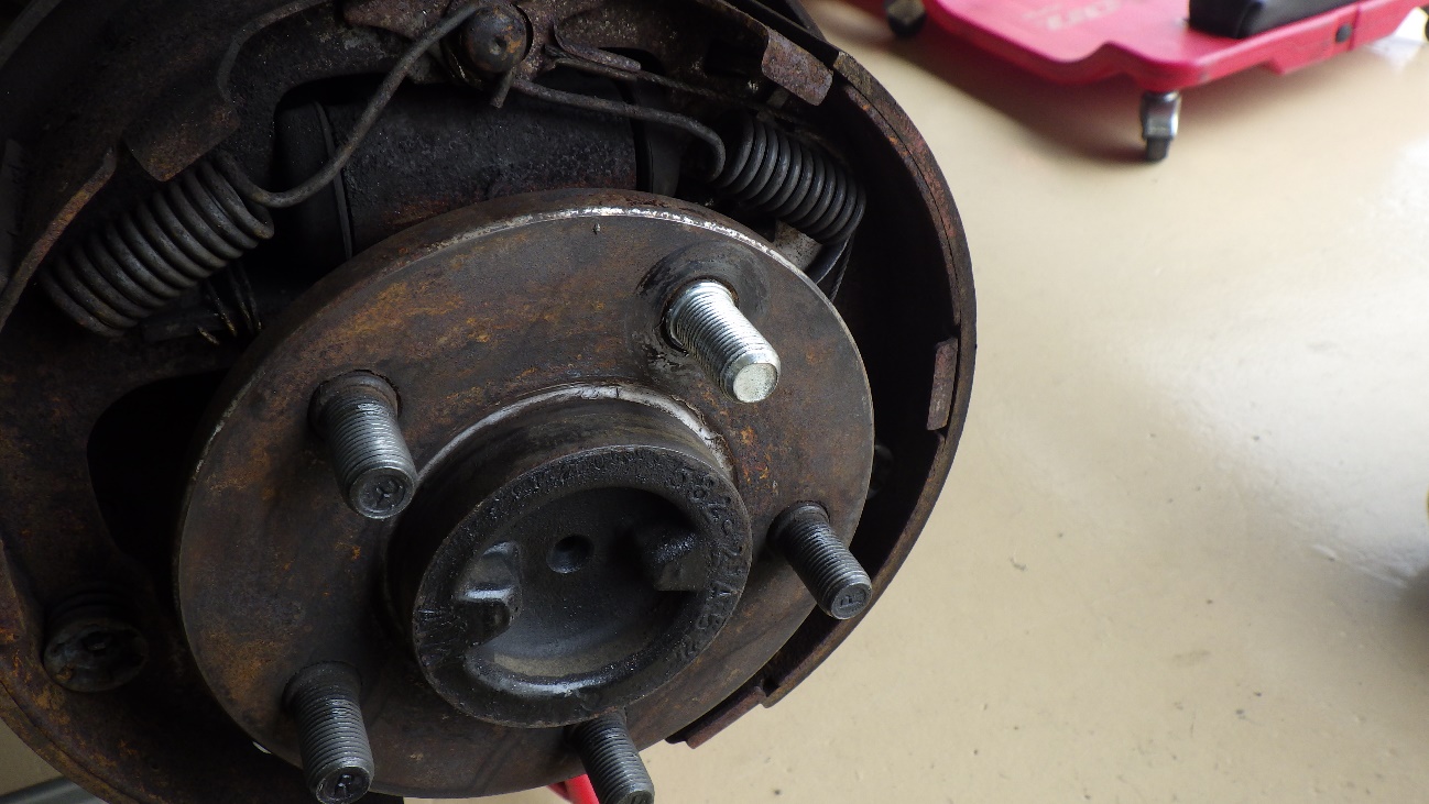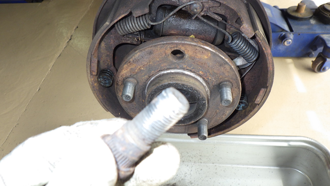 ブレーキドラムを取り外して作業しています。