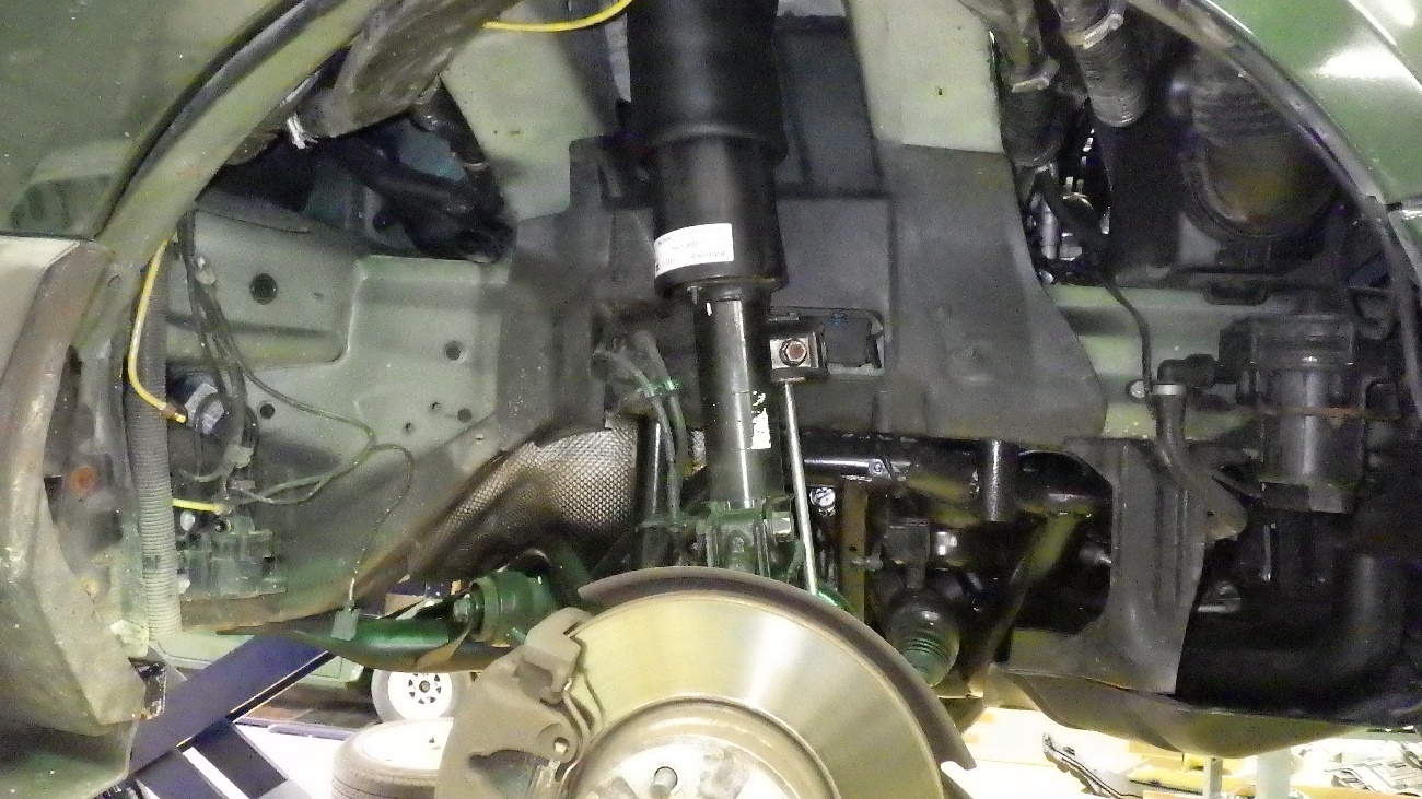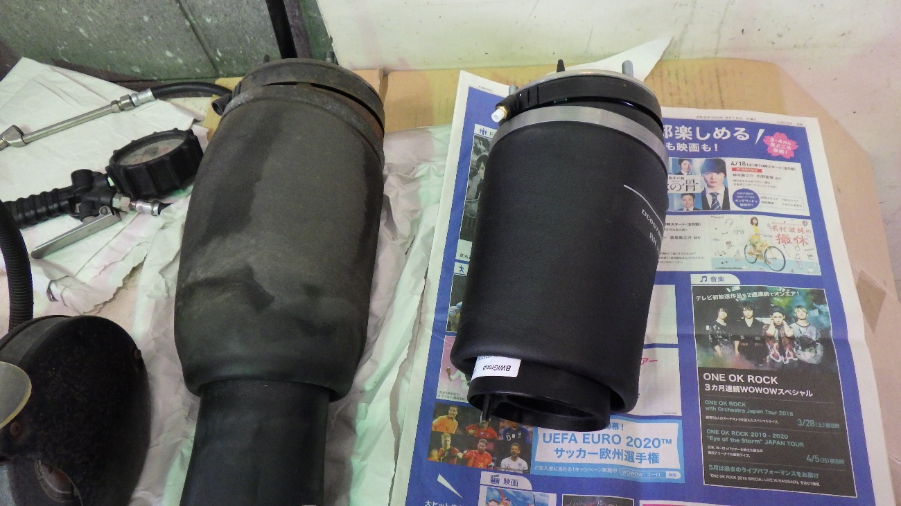 ゴムの劣化によるエア漏れの為、右フロントのエアサスペンションの交換作業に取り掛かって参ります。