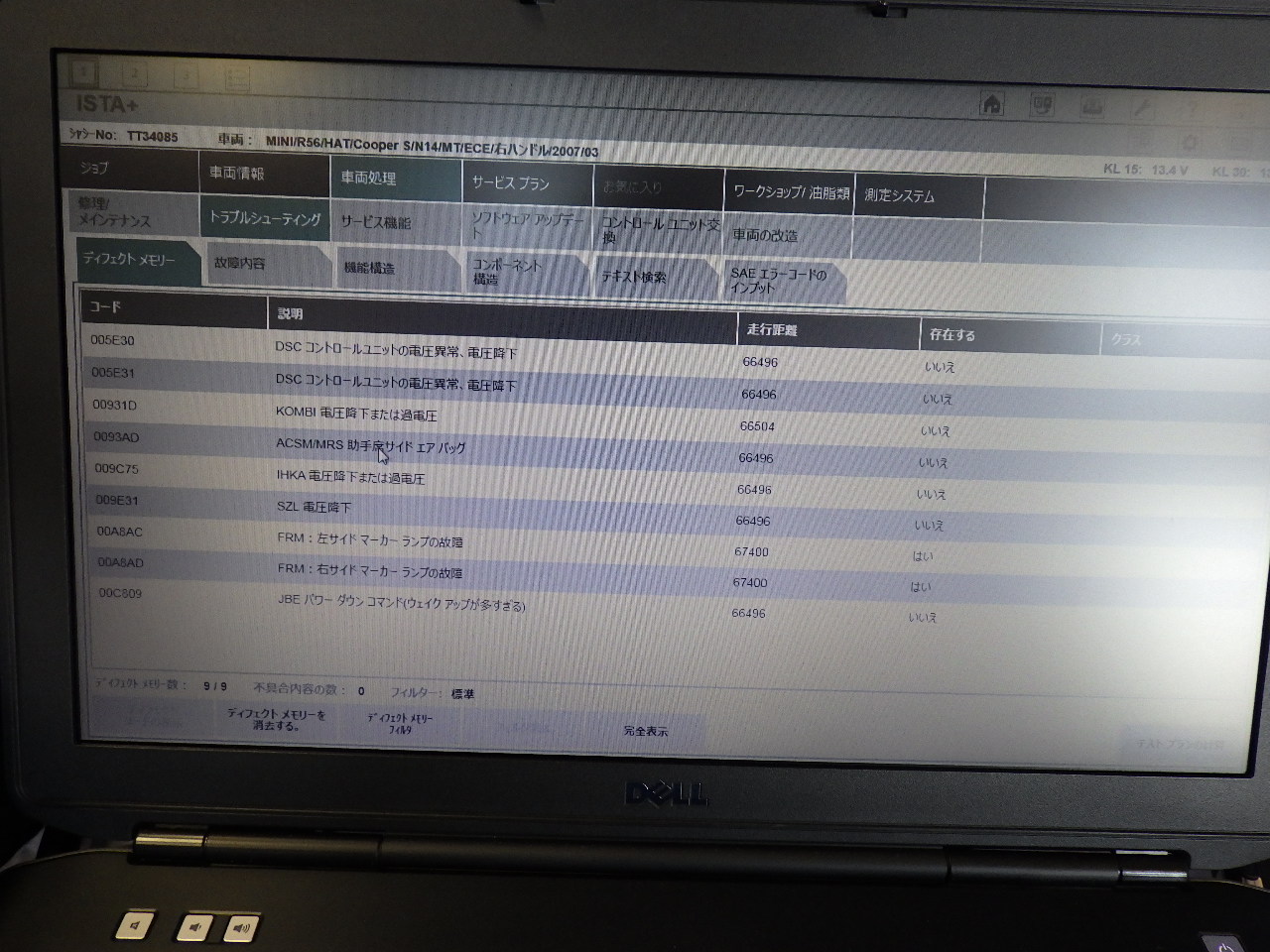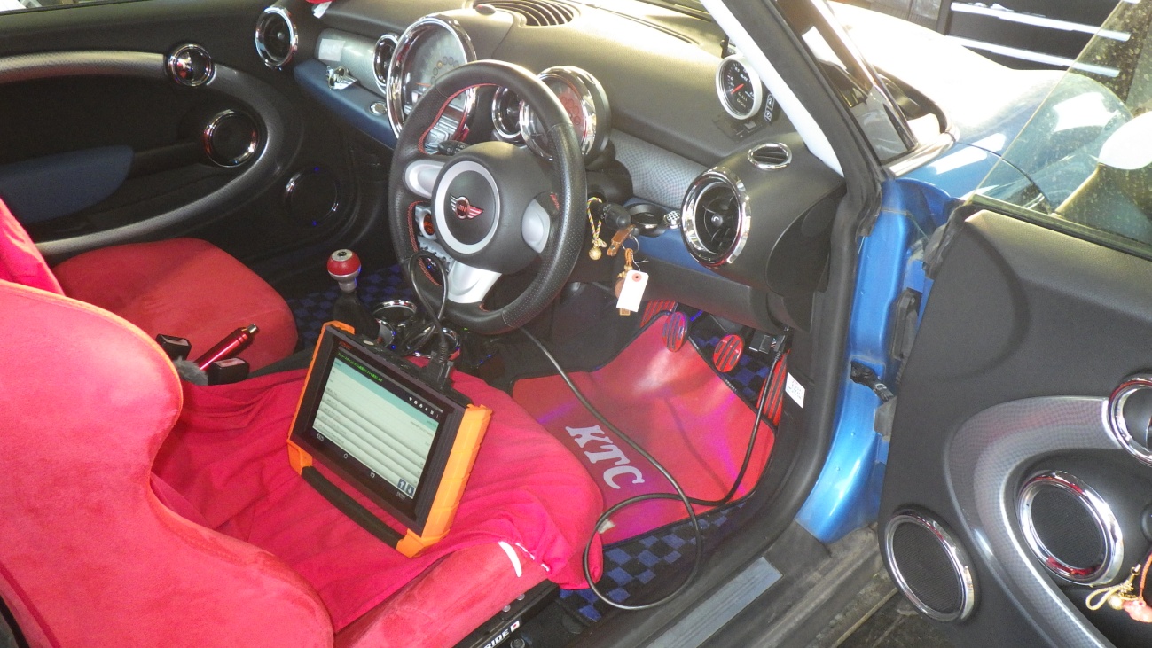 工場に入庫した状態です。専用のテスターを使用して診断していきます。