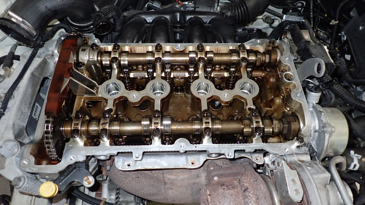 ヘッドカバーを取り外し、各部清掃後新品のガスケットに交換実施しています。