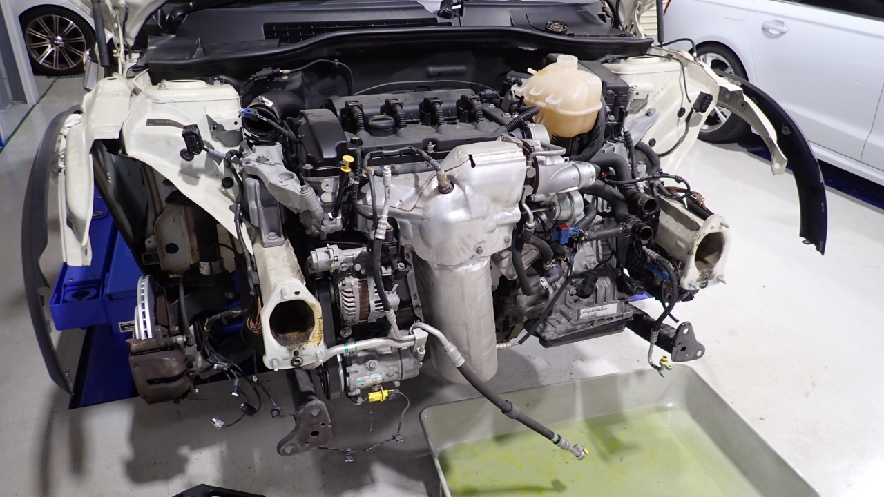 各部品を組み付け、クーラント、エアコンガスを補充後、