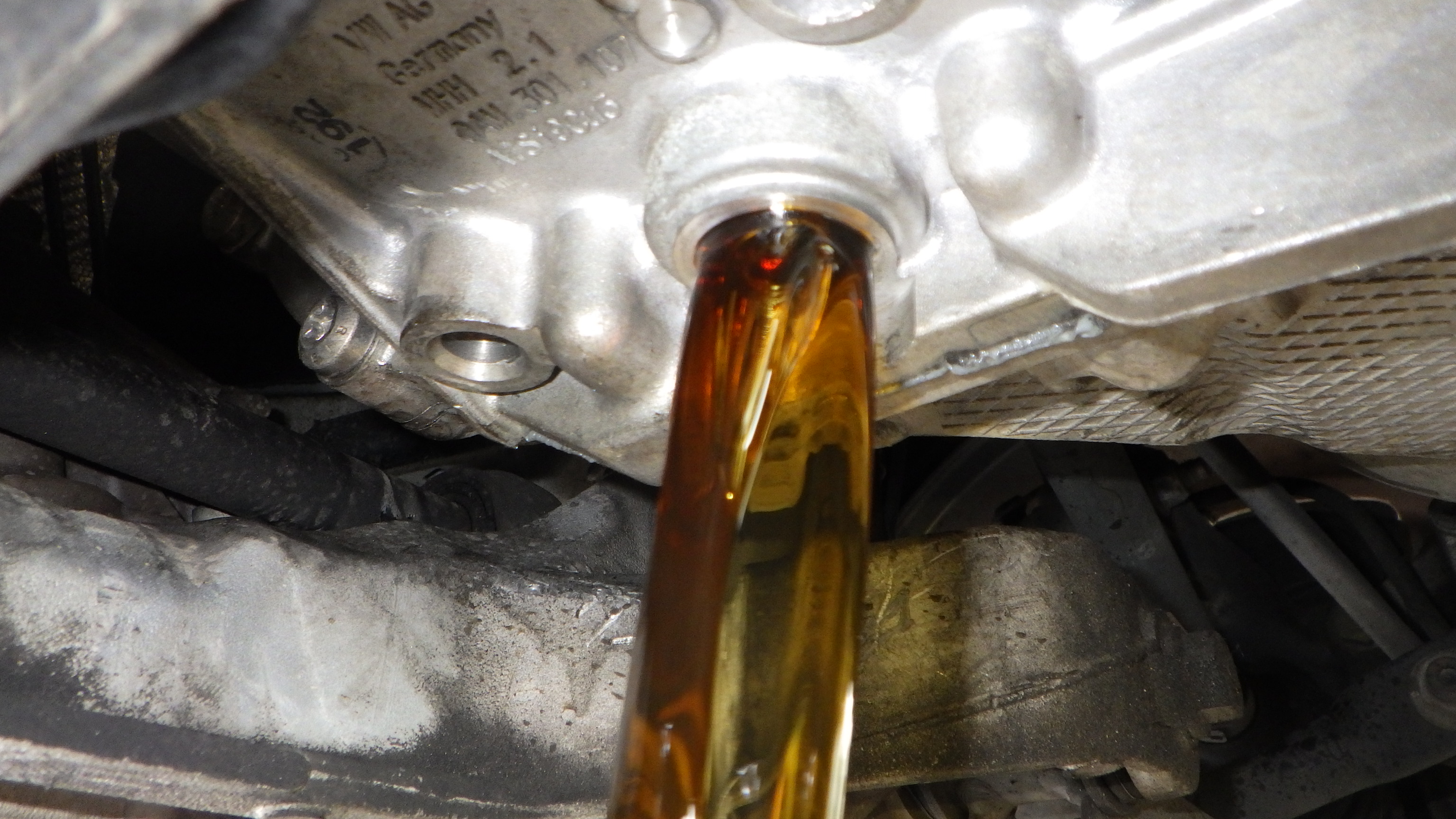 交換後、DSGオイルを排出後新品のオイルを補充しています。