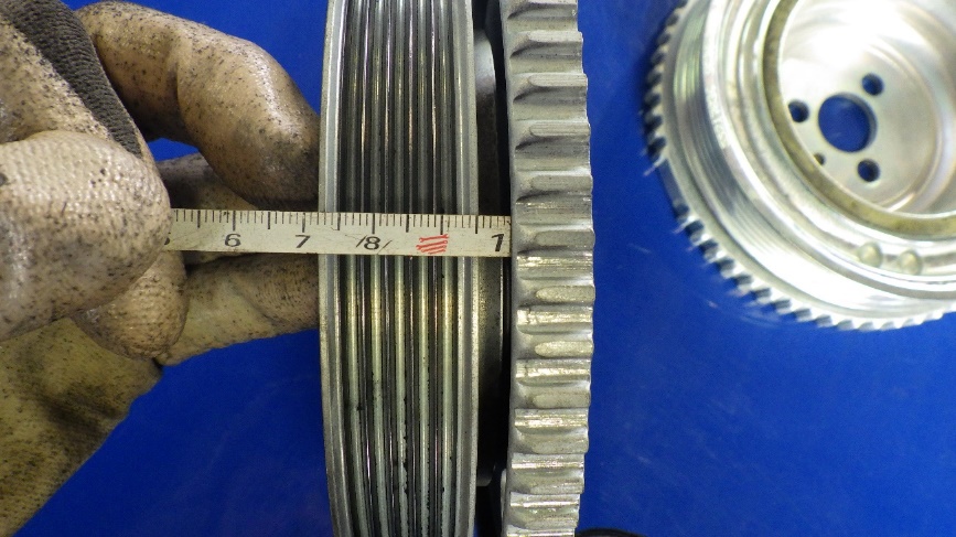 クランクプーリー自体が少し斜めに傾いていることがわかります。