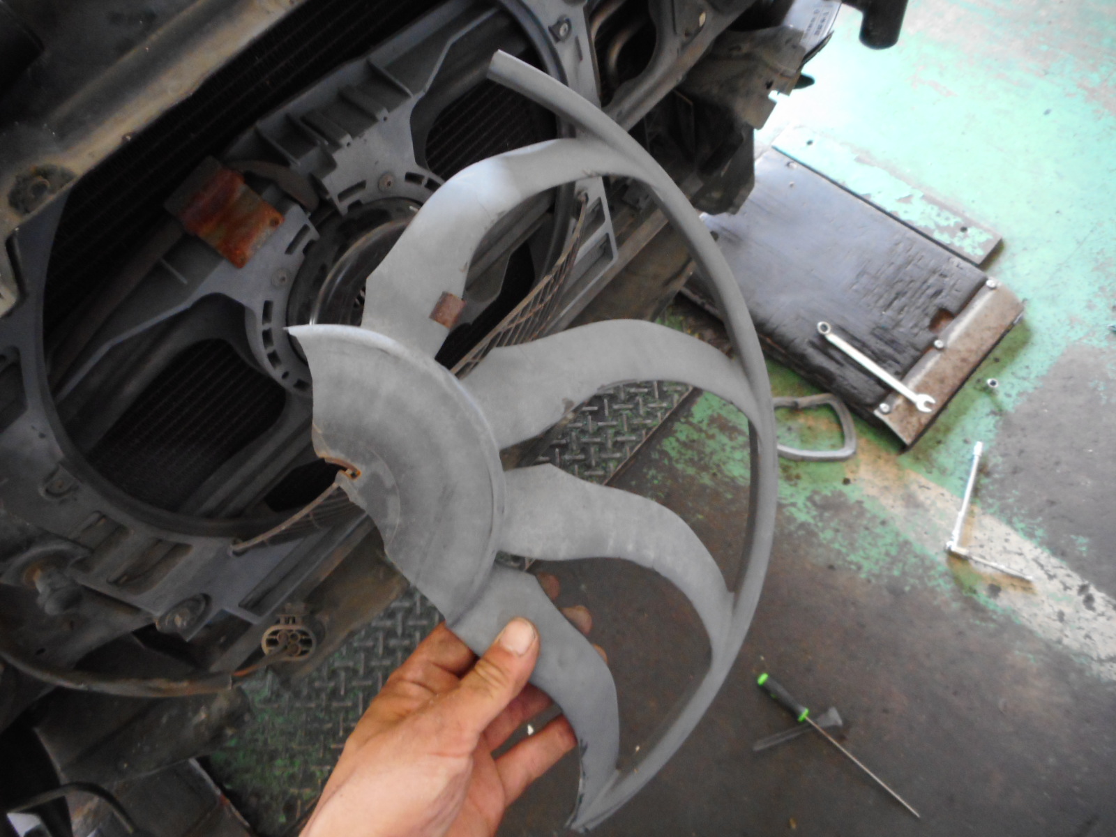 電動ファンの損傷で入庫しました。