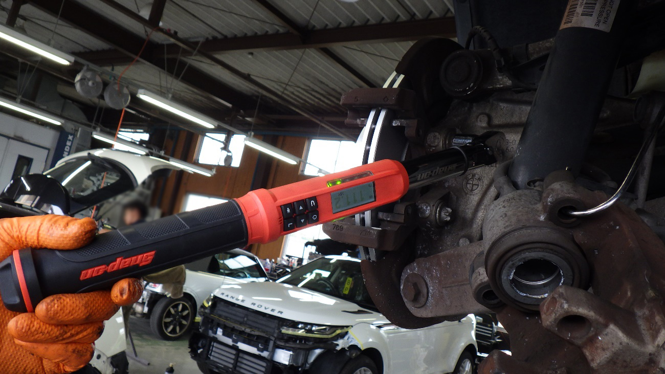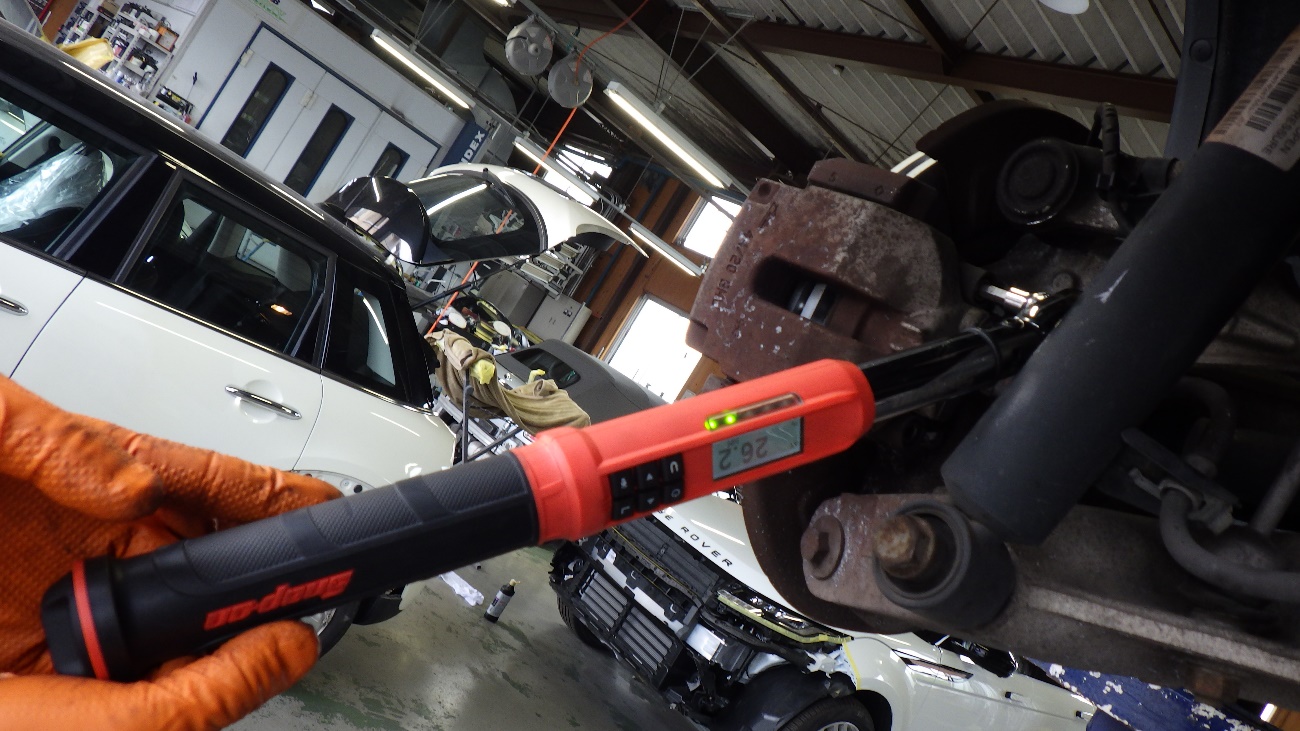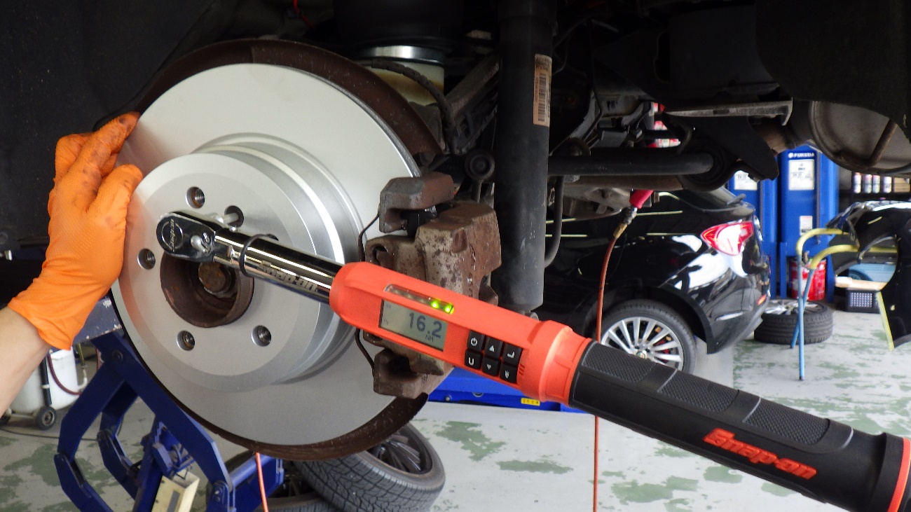 ディスクローターの固定ボルトを規定トルクで締め付けております。