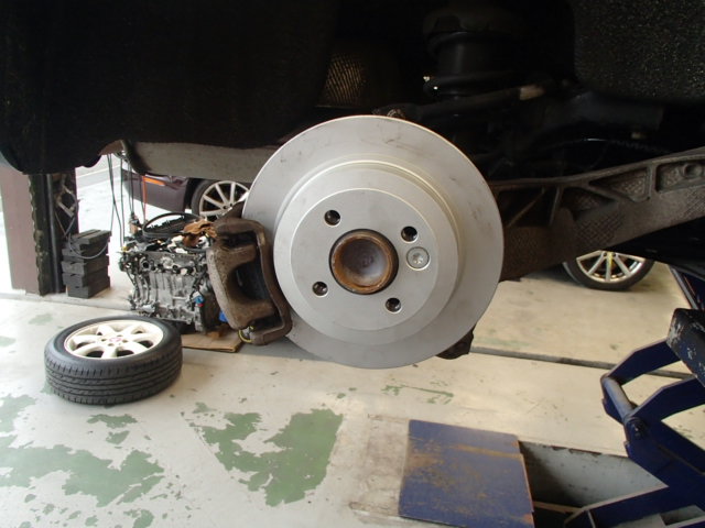 次にお客様からの追加ご用命でリヤのブレーキの整備作業です。