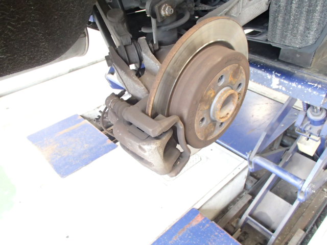 ブレーキパッドとブレーキディスク両方に摩耗が見られ、