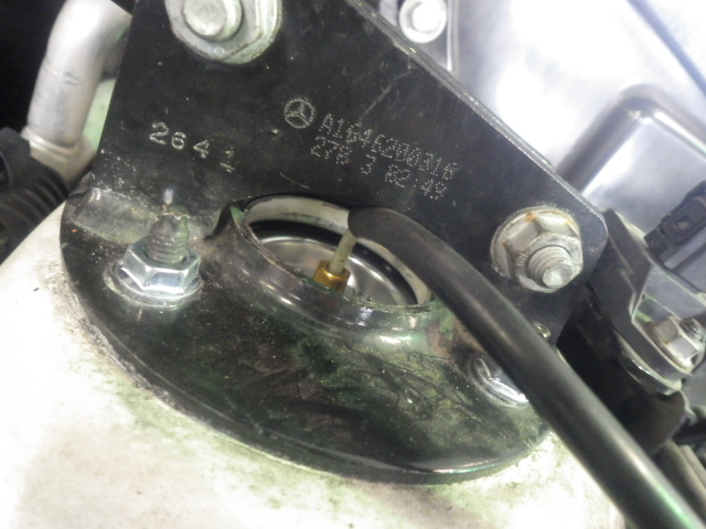 エアサスホースを外すためにエンジンルーム内の部品を外していきます。