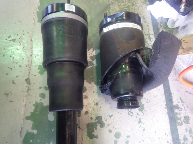 新しいエアサスバックと破裂したエアサスバックです。