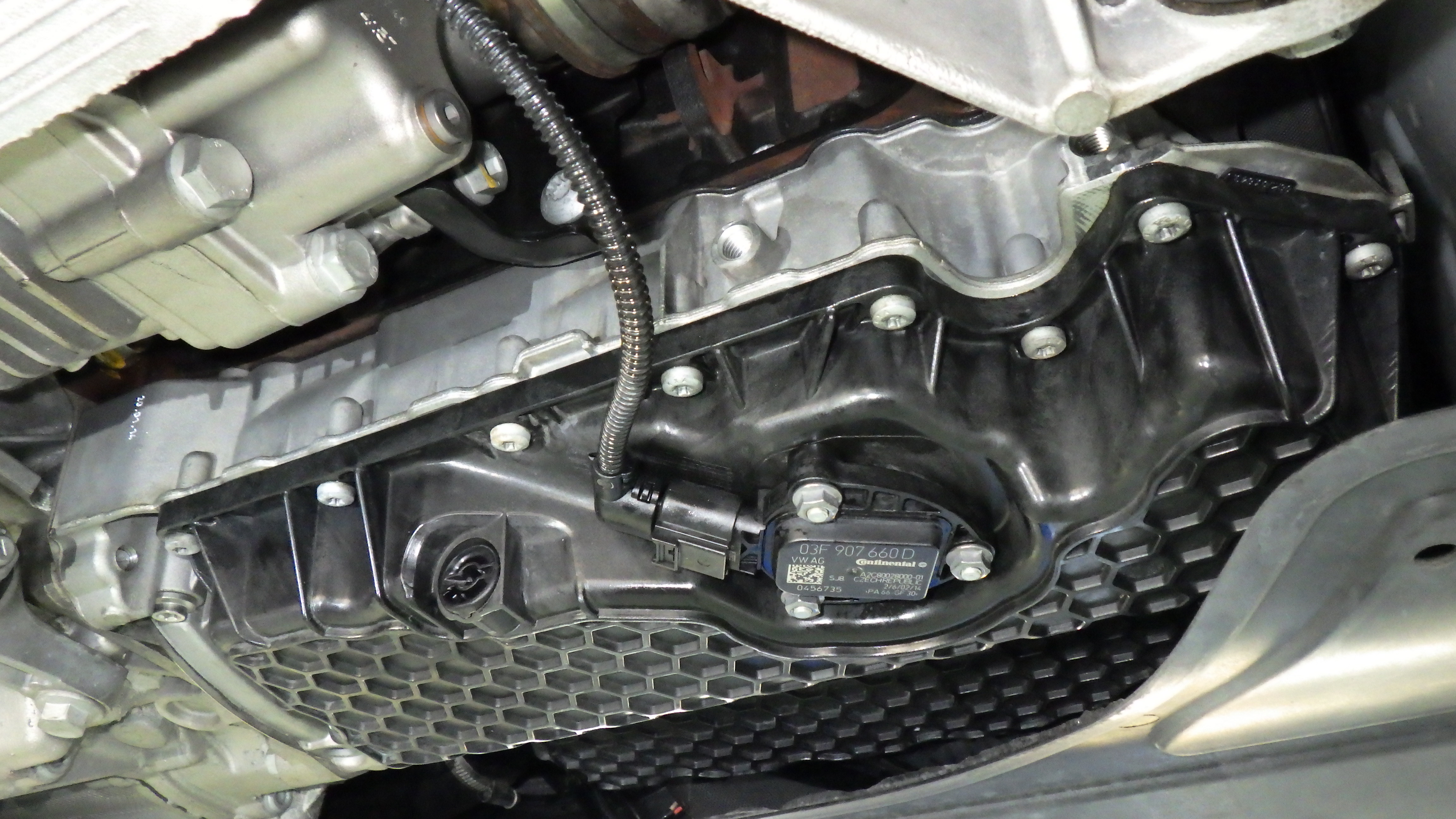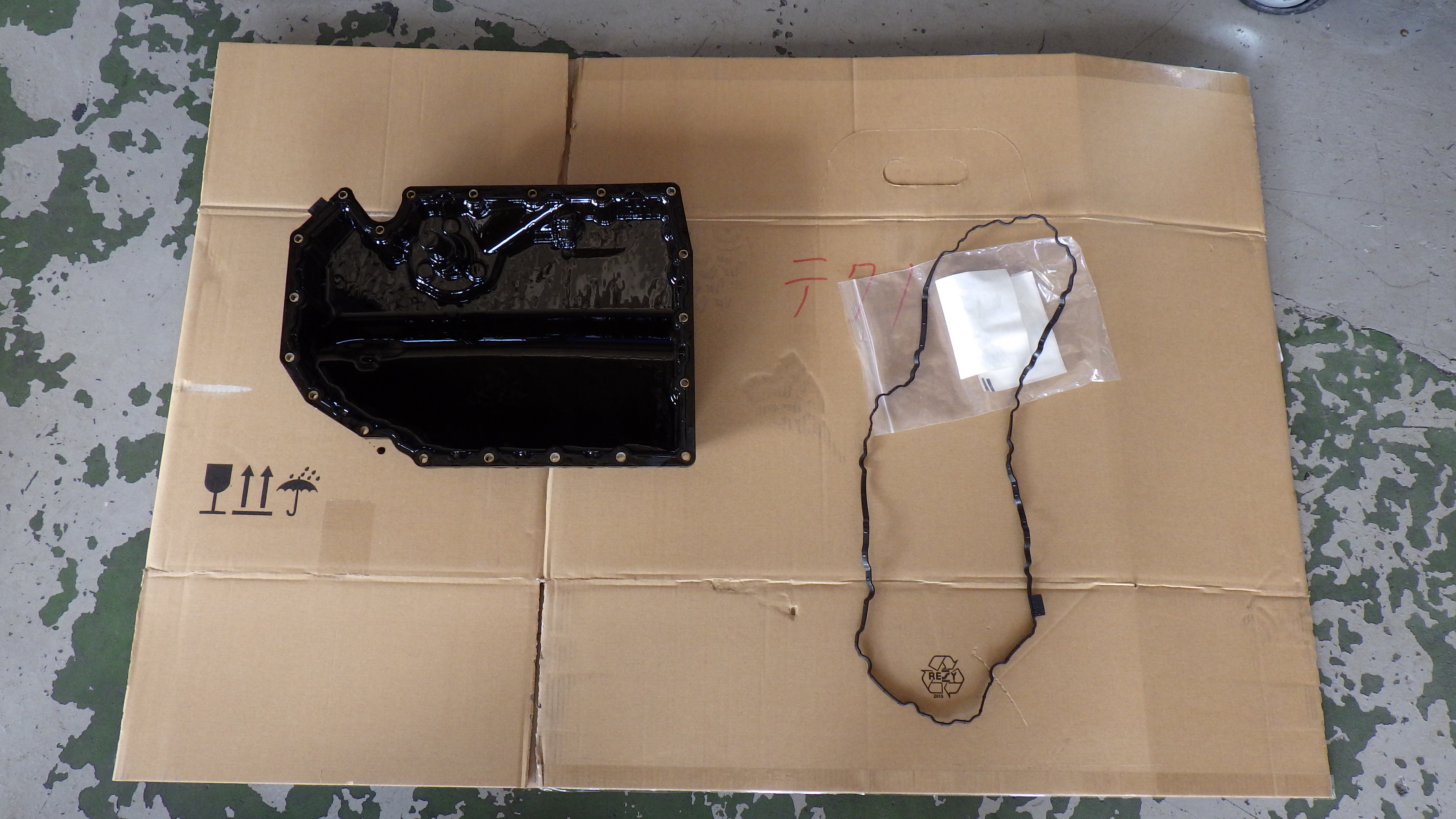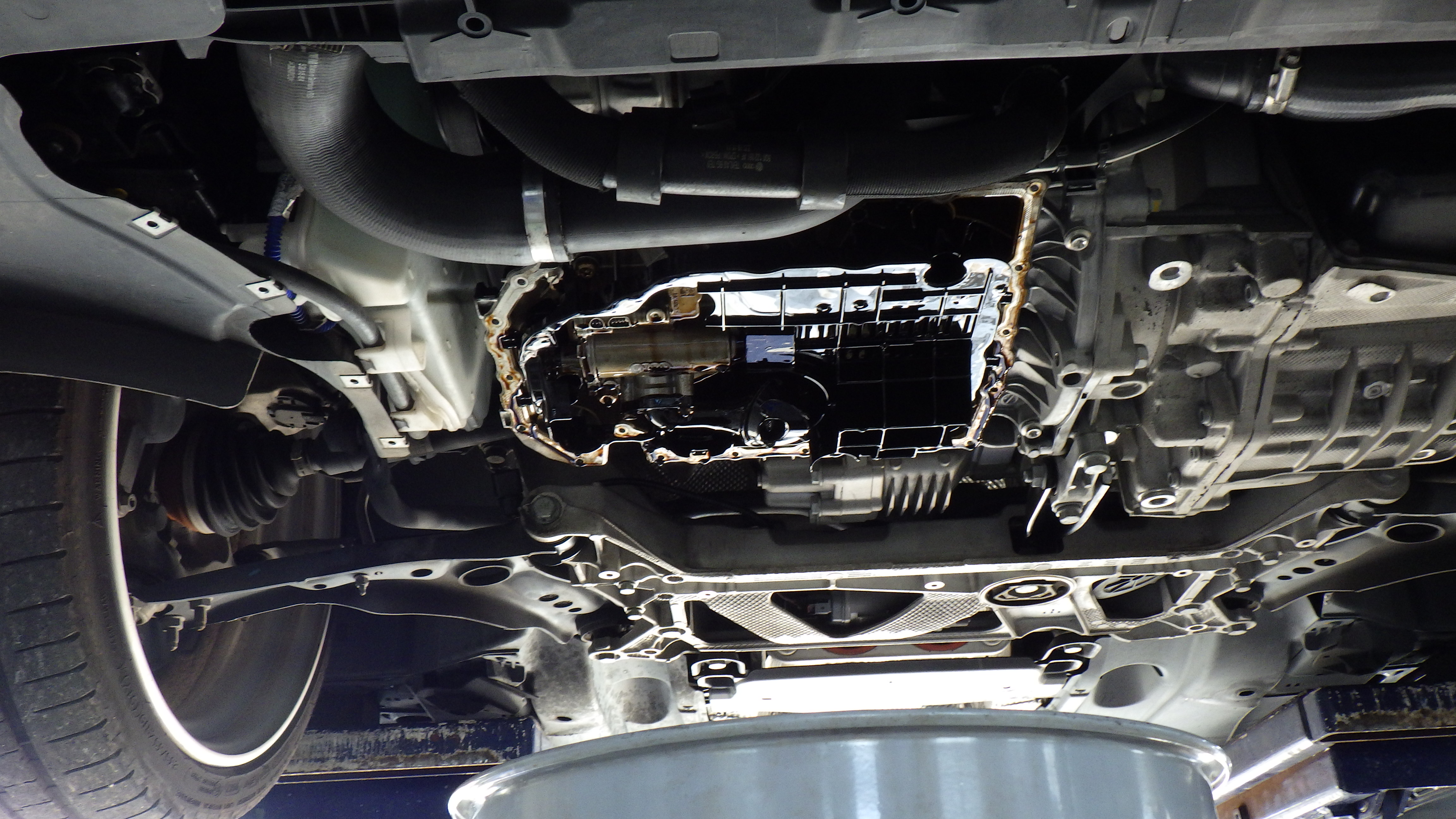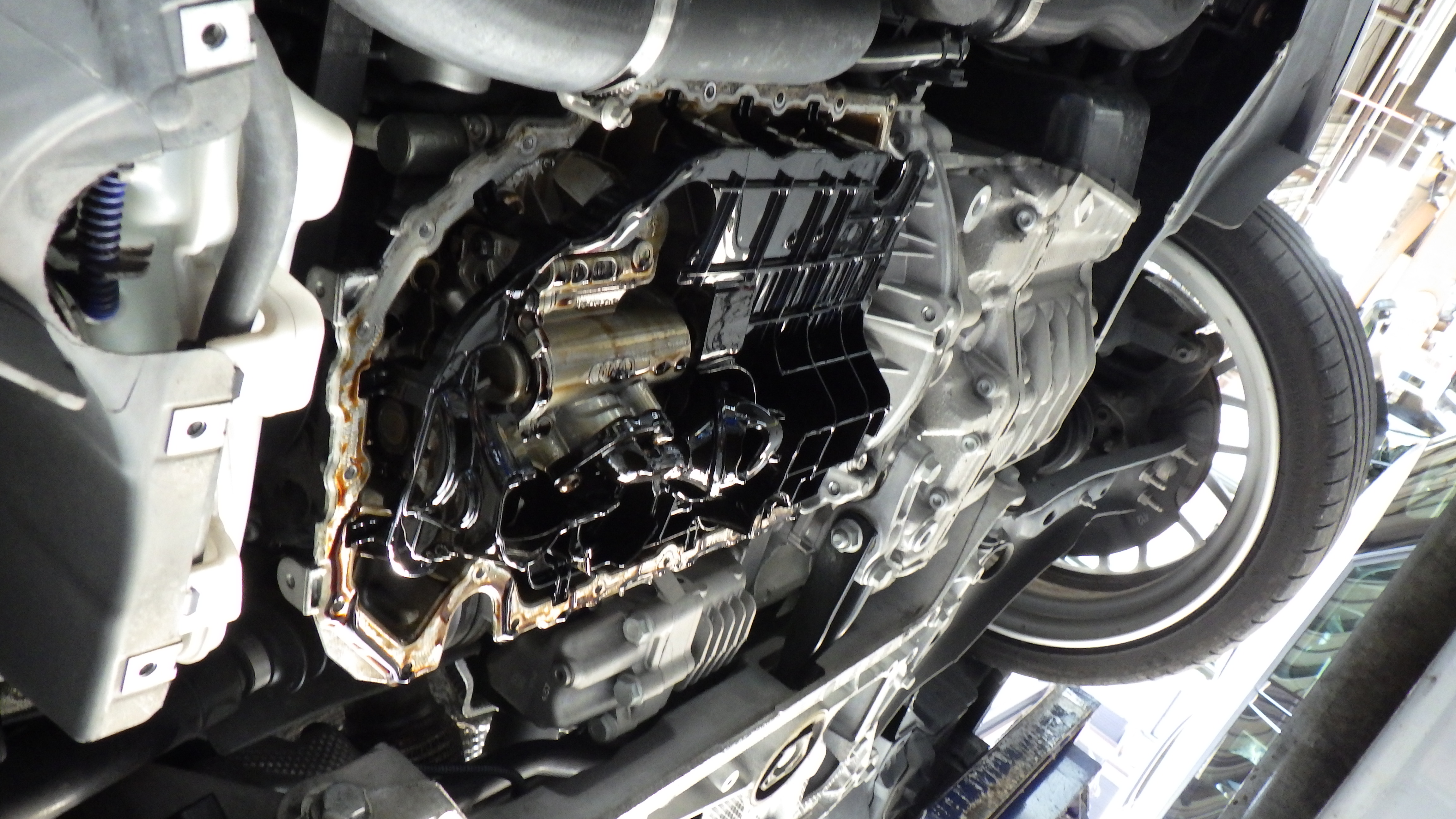オイルパンを取り外したところです。