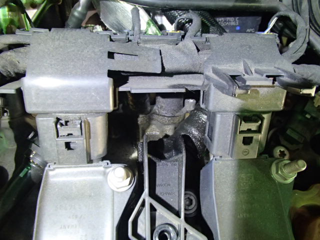 エンジンの上部の奥側のブローバイパイプからオイルが漏れていました。