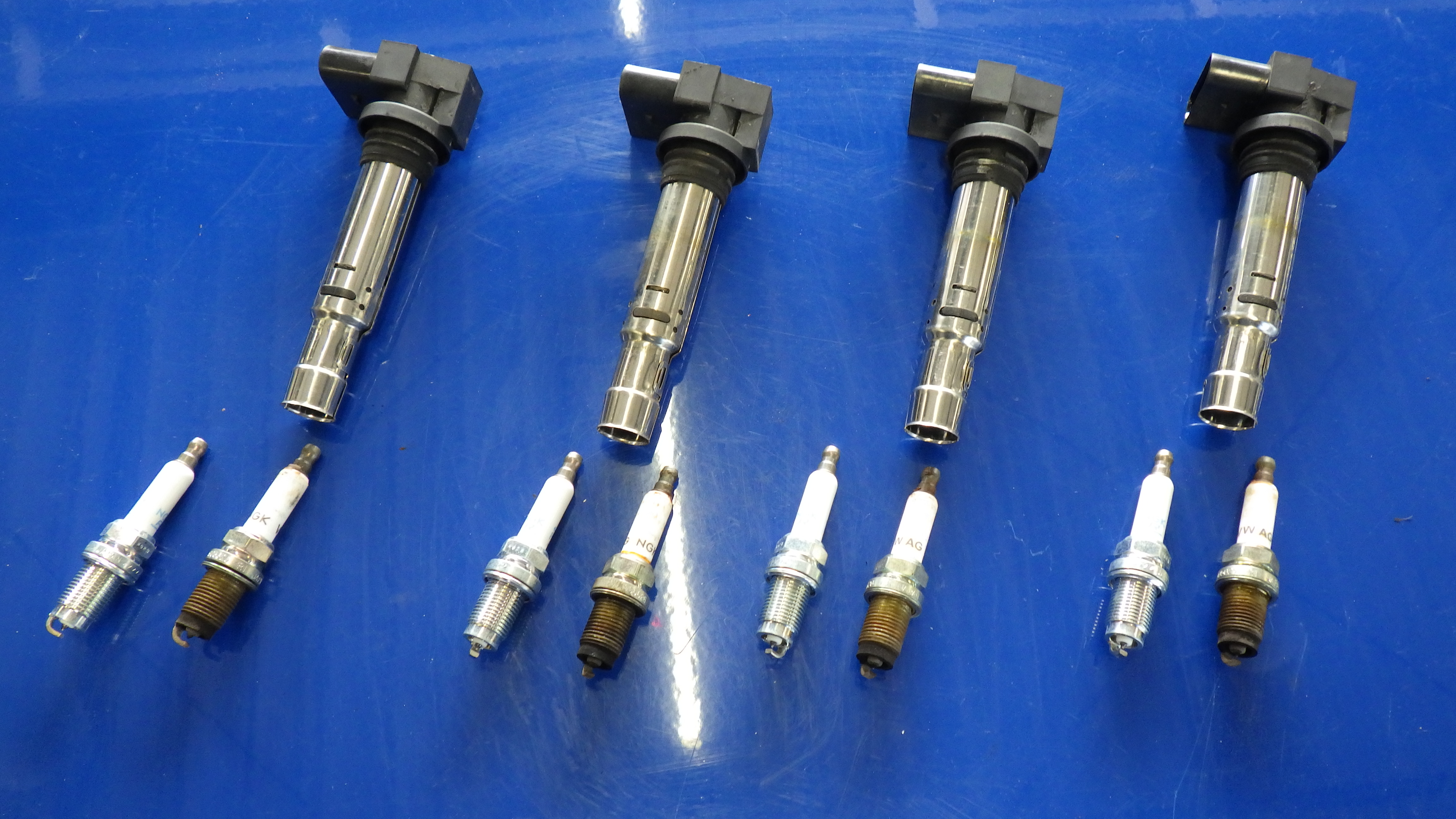 取り外したイグニッションコイルとスパークプラグです。