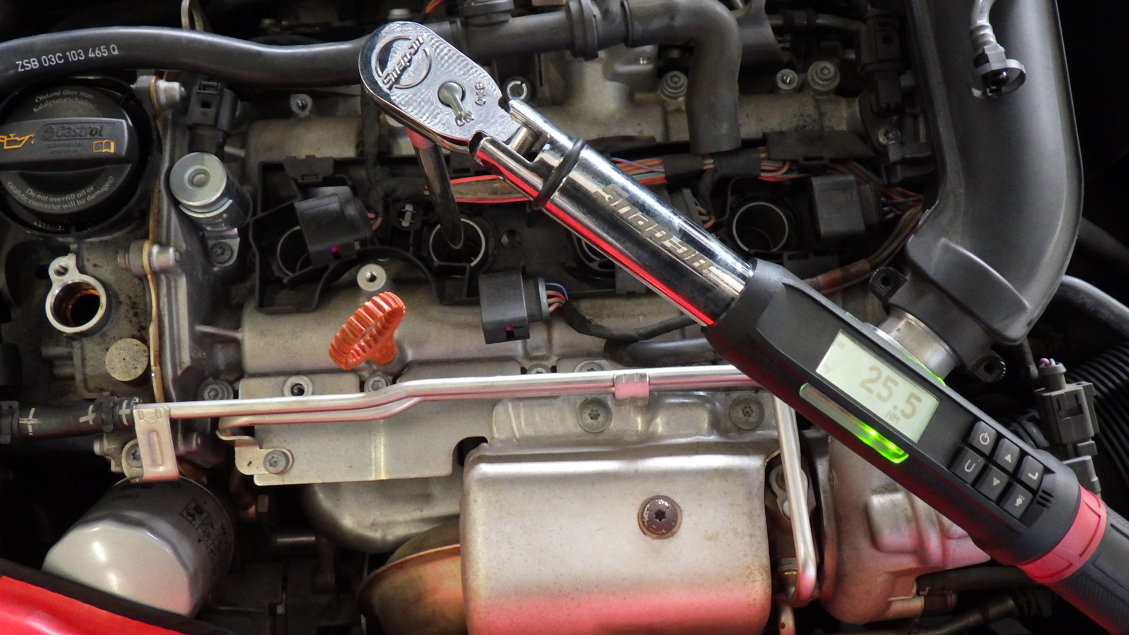 スパークプラグを取り付け、規定トルクで締め付けました。