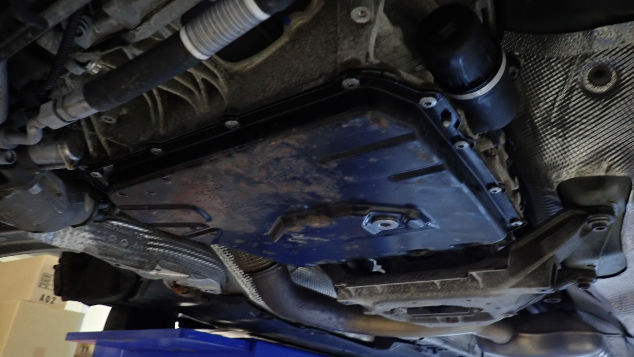オイルパンを取り外し、フィルターの交換も併せて実施しています。